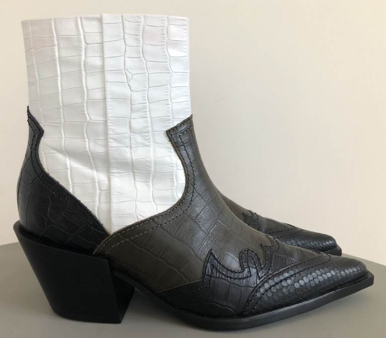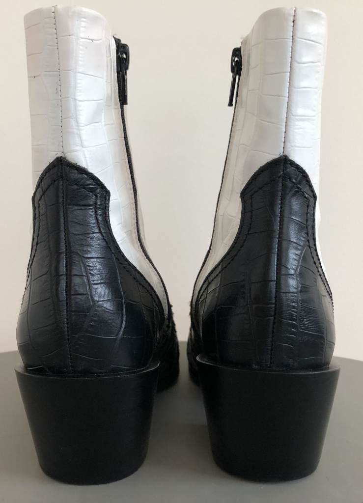White, brown and black leather - with crocodile pattern