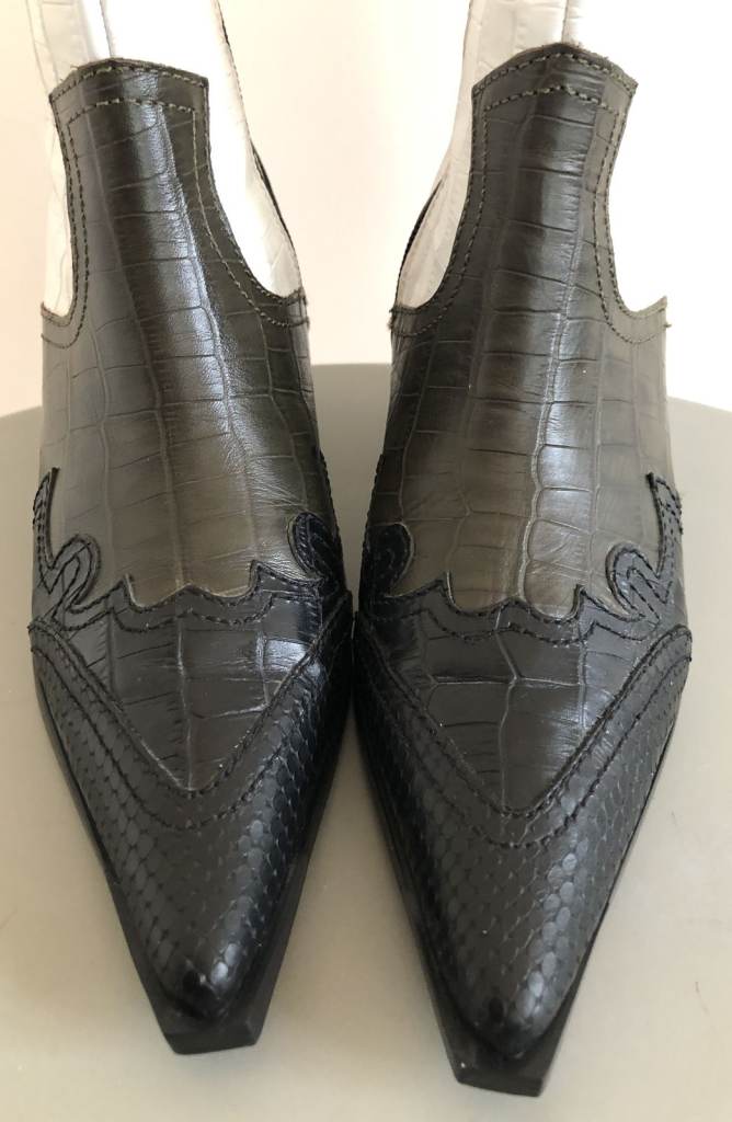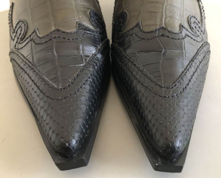 Black leather around the front of the boot has a snake skin pattern