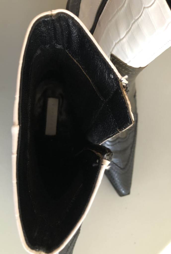 (There is some slight 'colouration' at the top of the boots - and on the inside zip flap - please see photos. However, I think it depends on the light and the angle / shadows as to how noticeable this is: I did not notice it initially. Presumably something to do with the manufacturing? Gluing?).