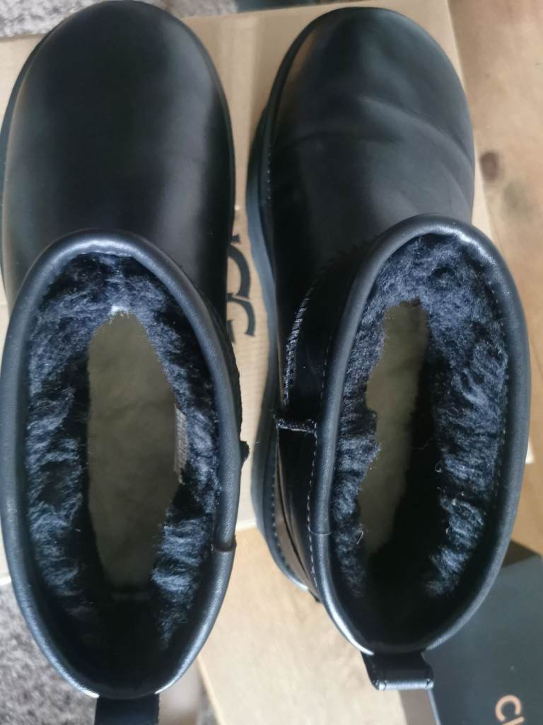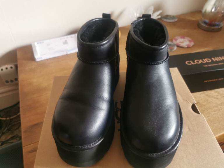 Genuine Ladies black leather ultra mini ugg boots size 6. Lovely clean condition.