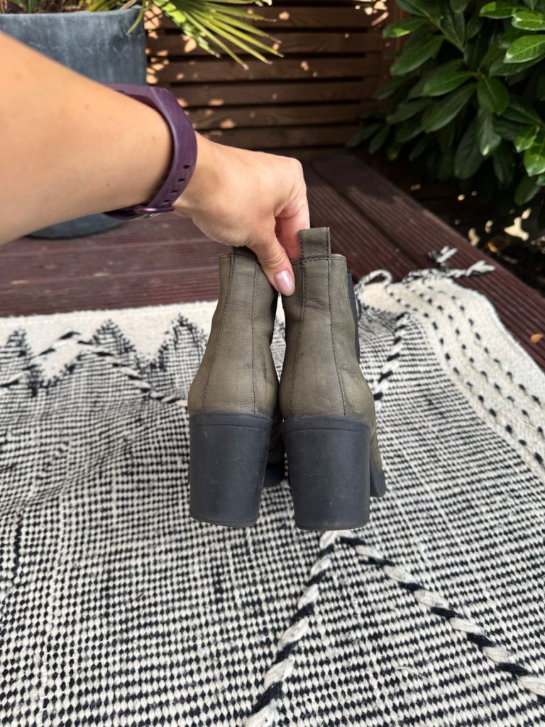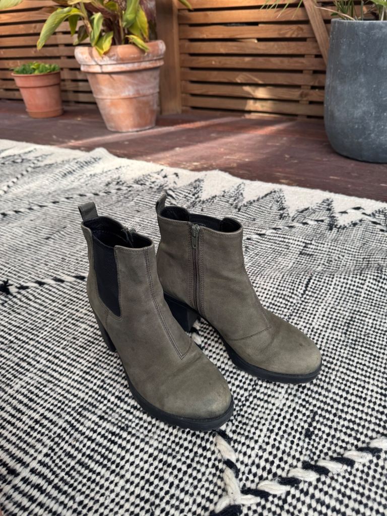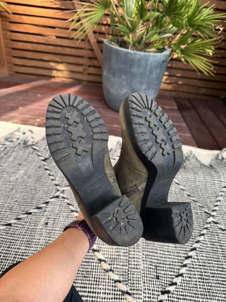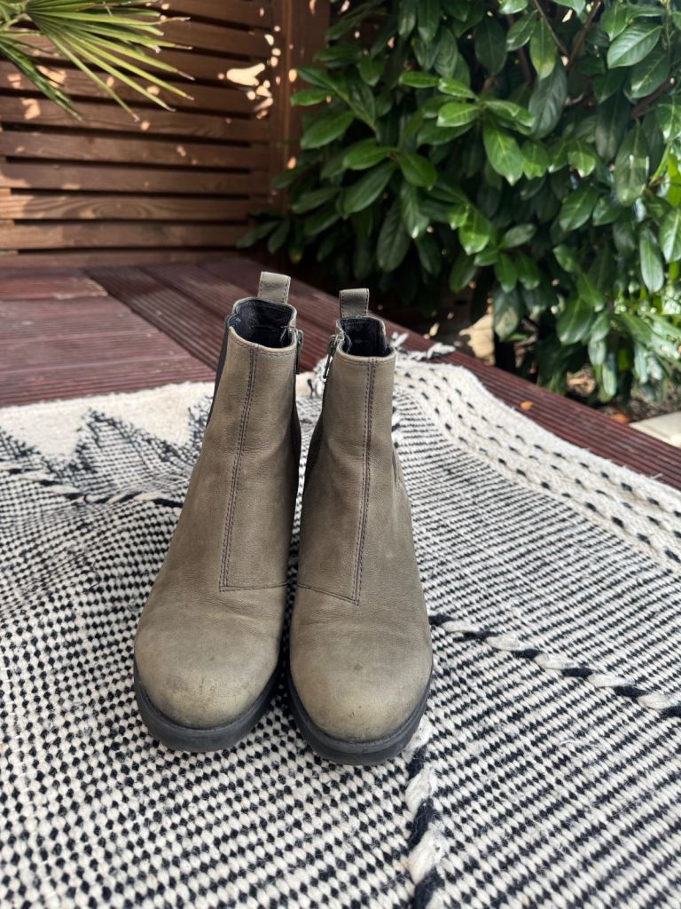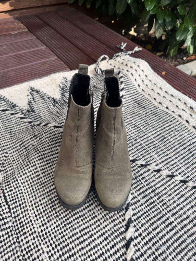 Vagabond ankle boots, leather with rubber sole and heel - super comfy and quiet! Olive colour with a size zip. Size 5, EUR 38