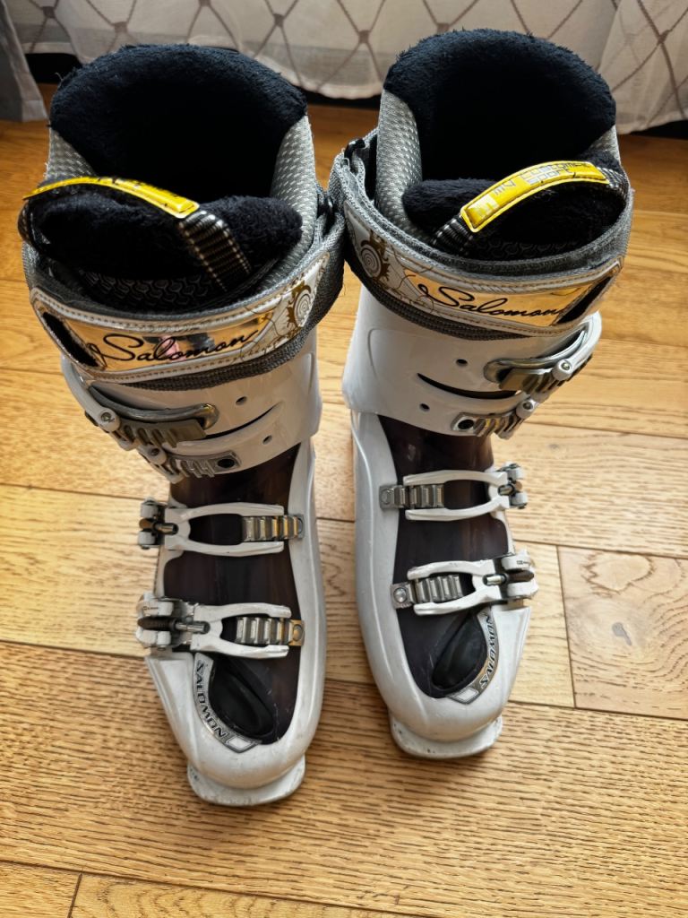 Very good skiing boots. size UK39/40. Perfect working condition. Just wear and tear. Perfect for first time skiers. Pick up only.