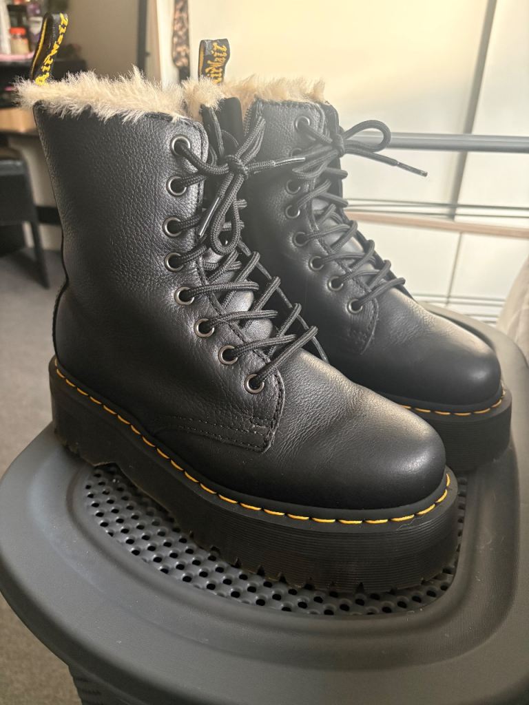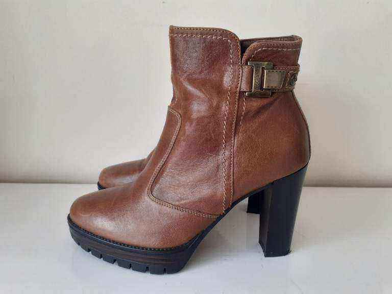 A pair of ladies bitter chocolate Wellington boots in a size UK 7