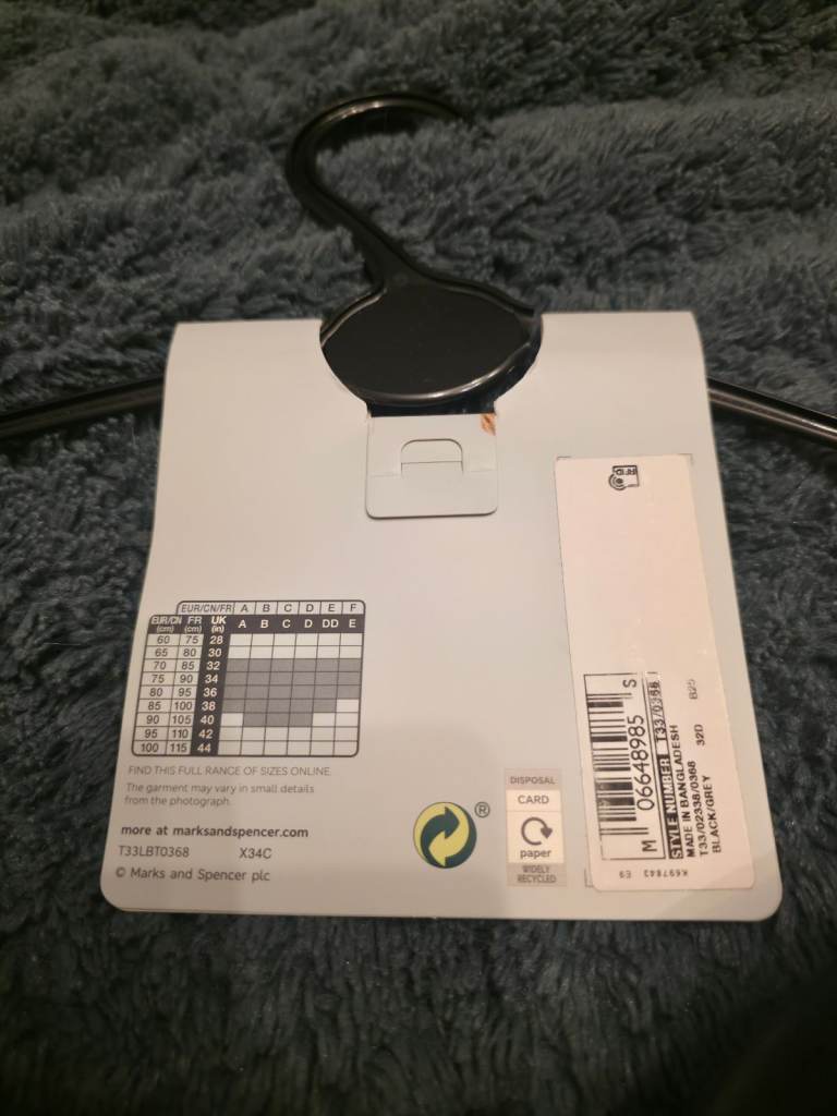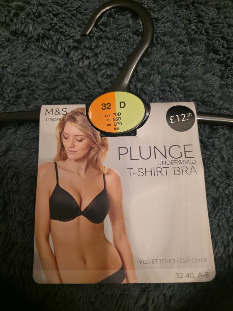 BNWT Marks & Spencer Black Padded Underwired Plunge T-Shirt Bra Size 32D