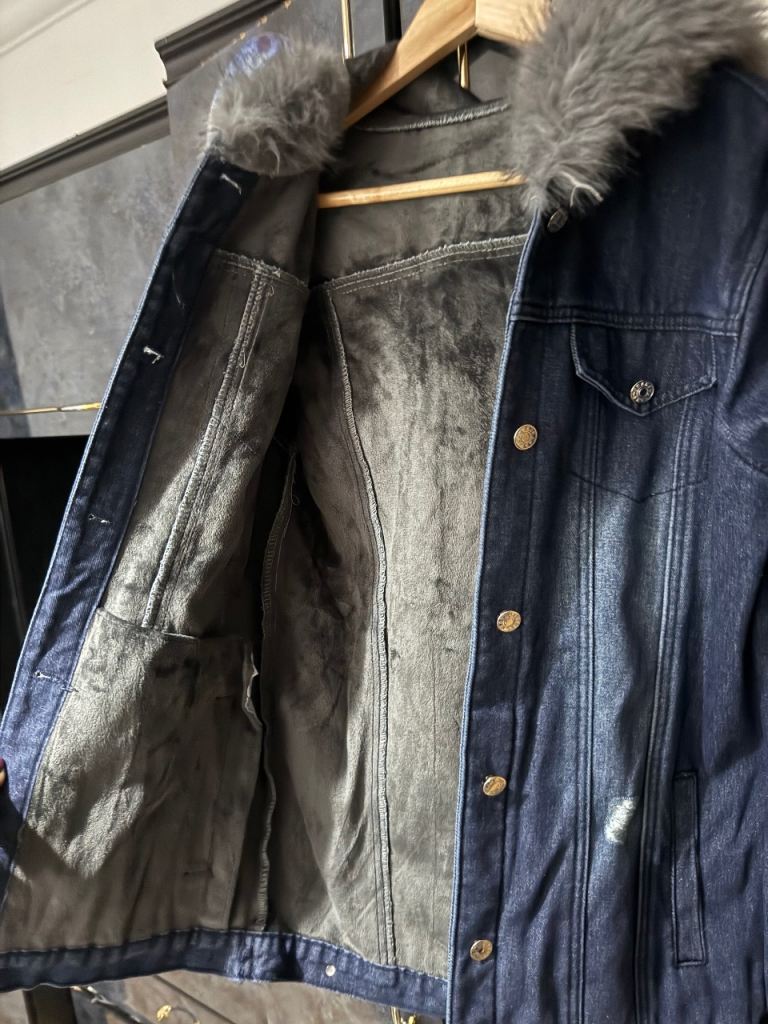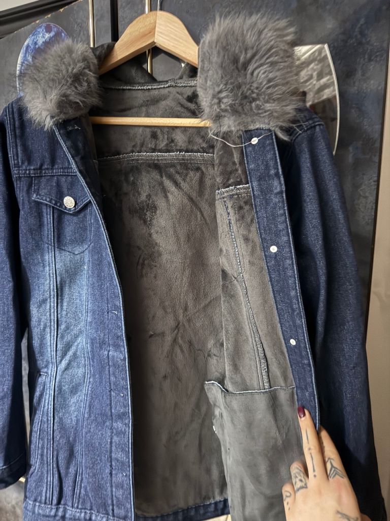 Brand new denim jacket with a soft and warm faux fur lining, never worn.