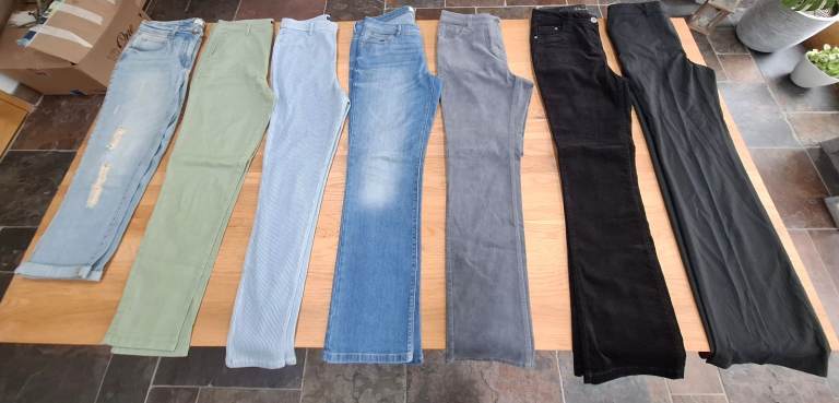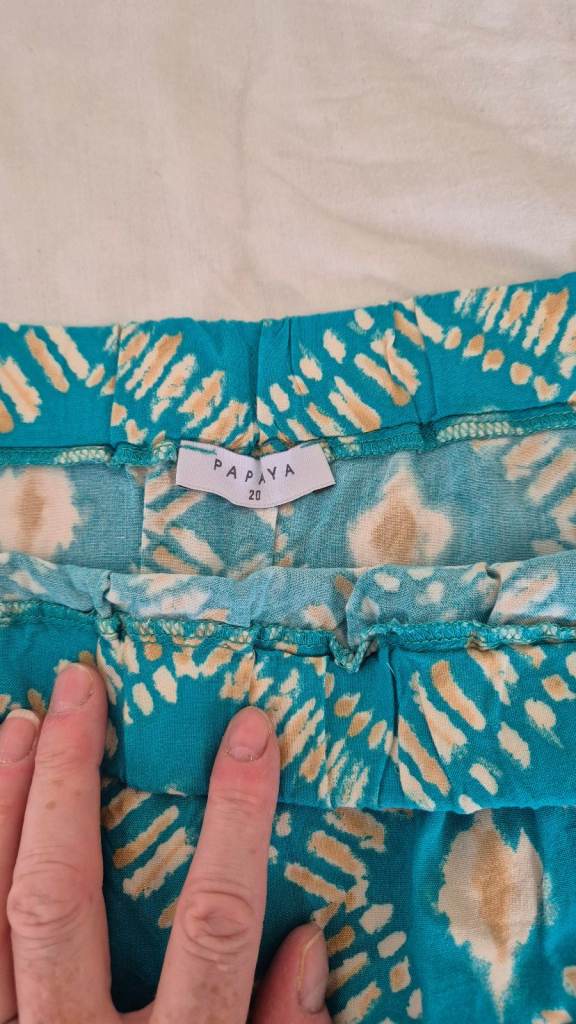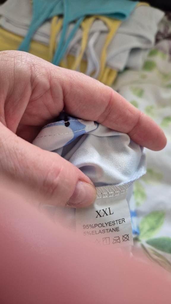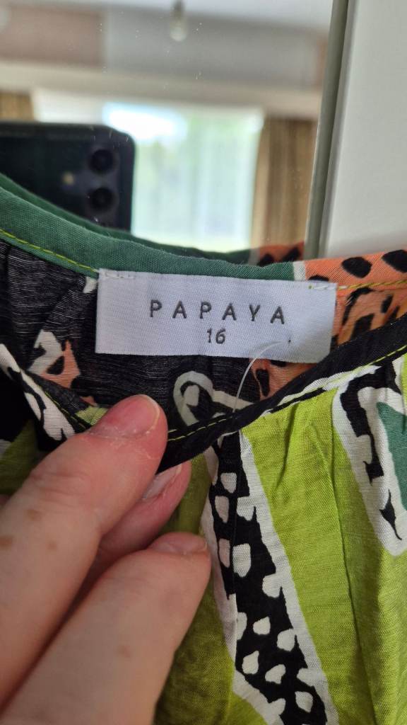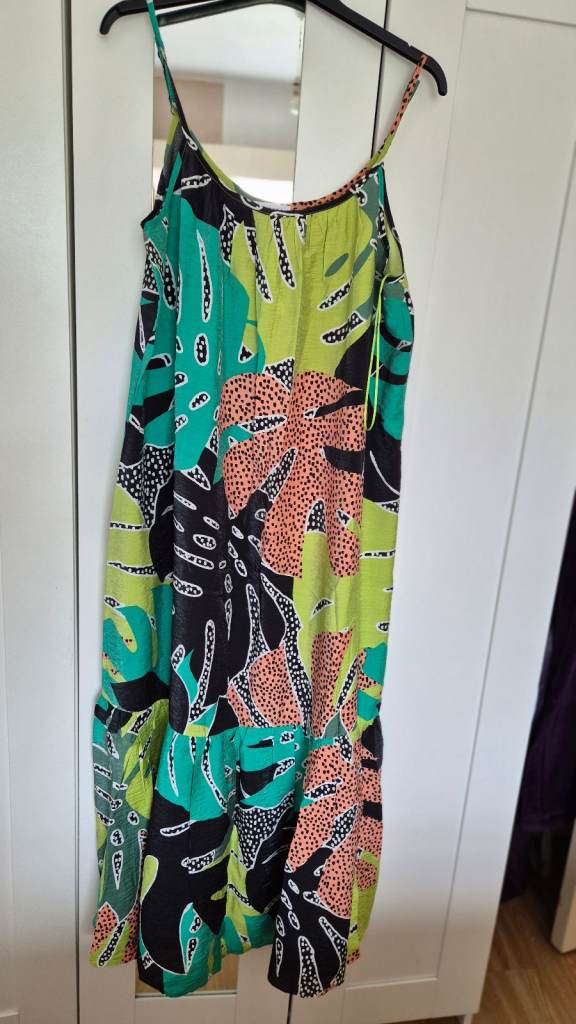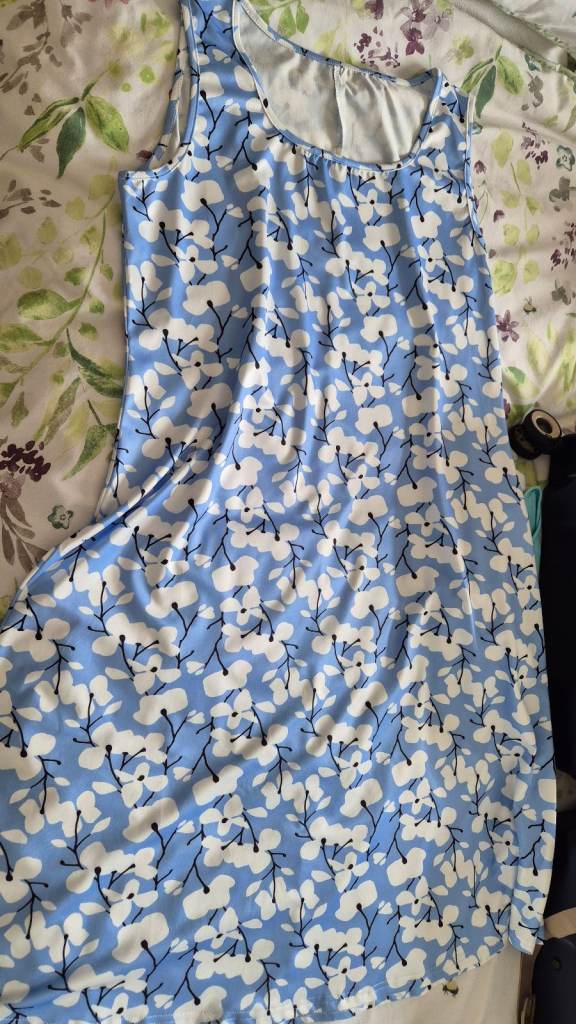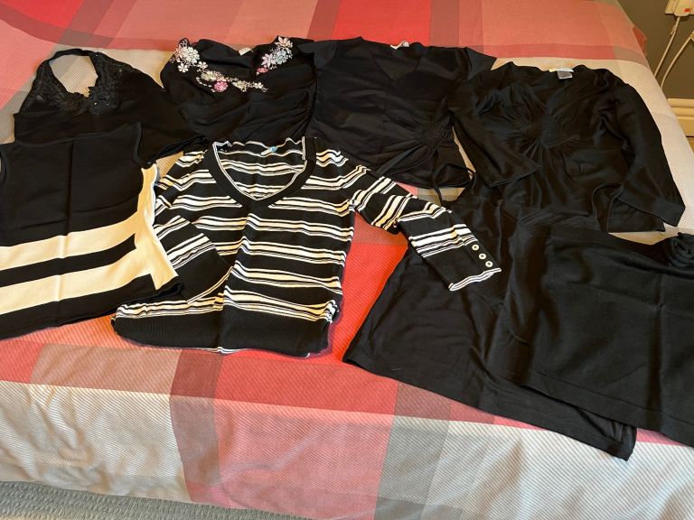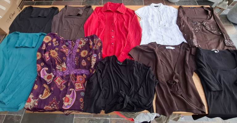 Most of them have not been worn apart from long blue pattern dress and black and white dress . Bought to many things for holidays and now don't fit .