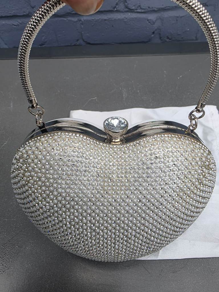 Silver heart shape clutch bag from Quiz