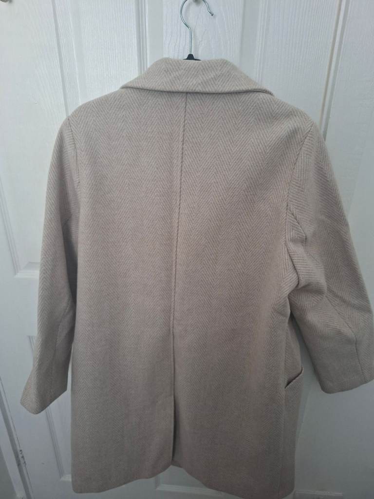 Beige Herringbone Coat. Size 18. Only worn a couple of times. 2 front pockets