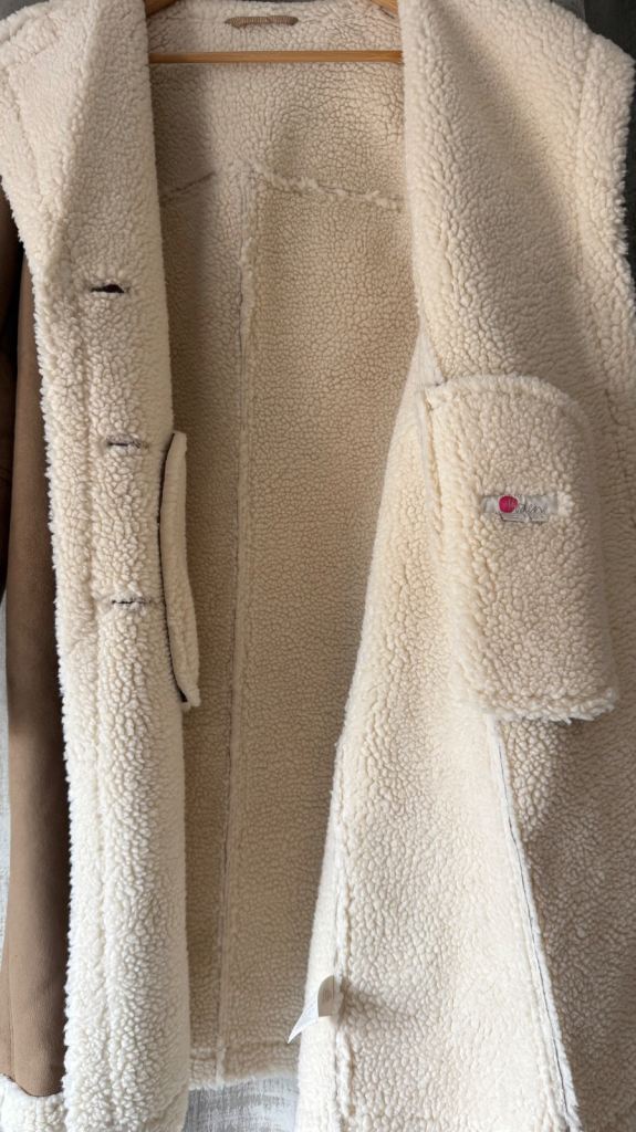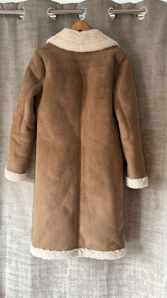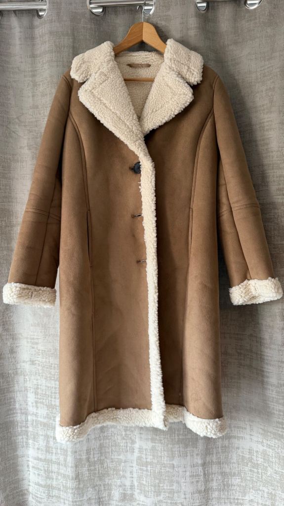 Brand New Long Boden Faux Shearling Coat / Brown / Buttons / Size UK 12/US 8