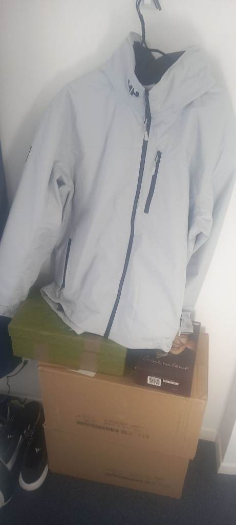 Helly hanson jacket size xxl white outside black inside nice and light and airy. I paid £140 for it 2 months ago used it once £95