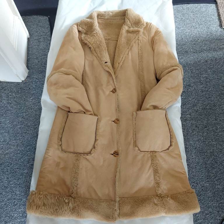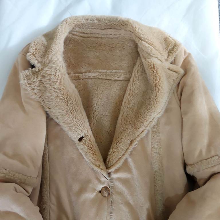 Beautiful Italian-made shearling style coat in a warm beige/camel colour 🤍