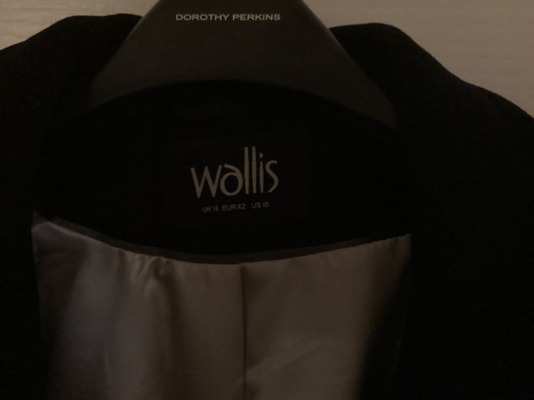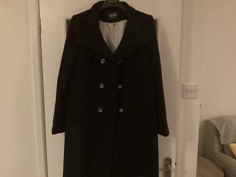 Quality ‘Wallis’ brand smart black knee length coat, womens UK size 14. Manufactured from mixed fibres and fully lined. Only worn on half a dozen occasions, in excellent condition and comes from a smoke and pet free home. Available for collection from Tiptree near Colchester/ Witham. Please contact Roger via the normal Gumtree links.