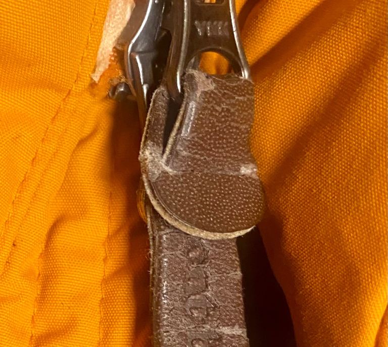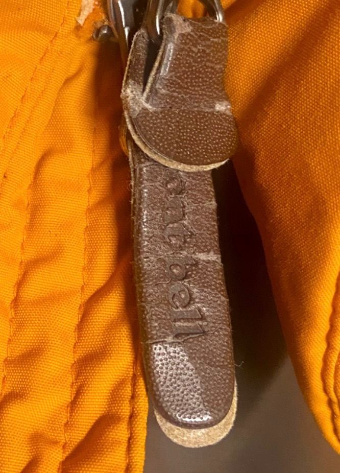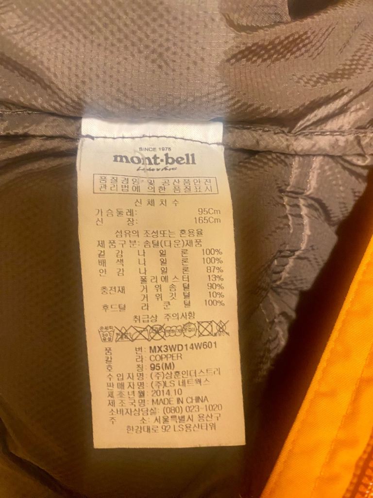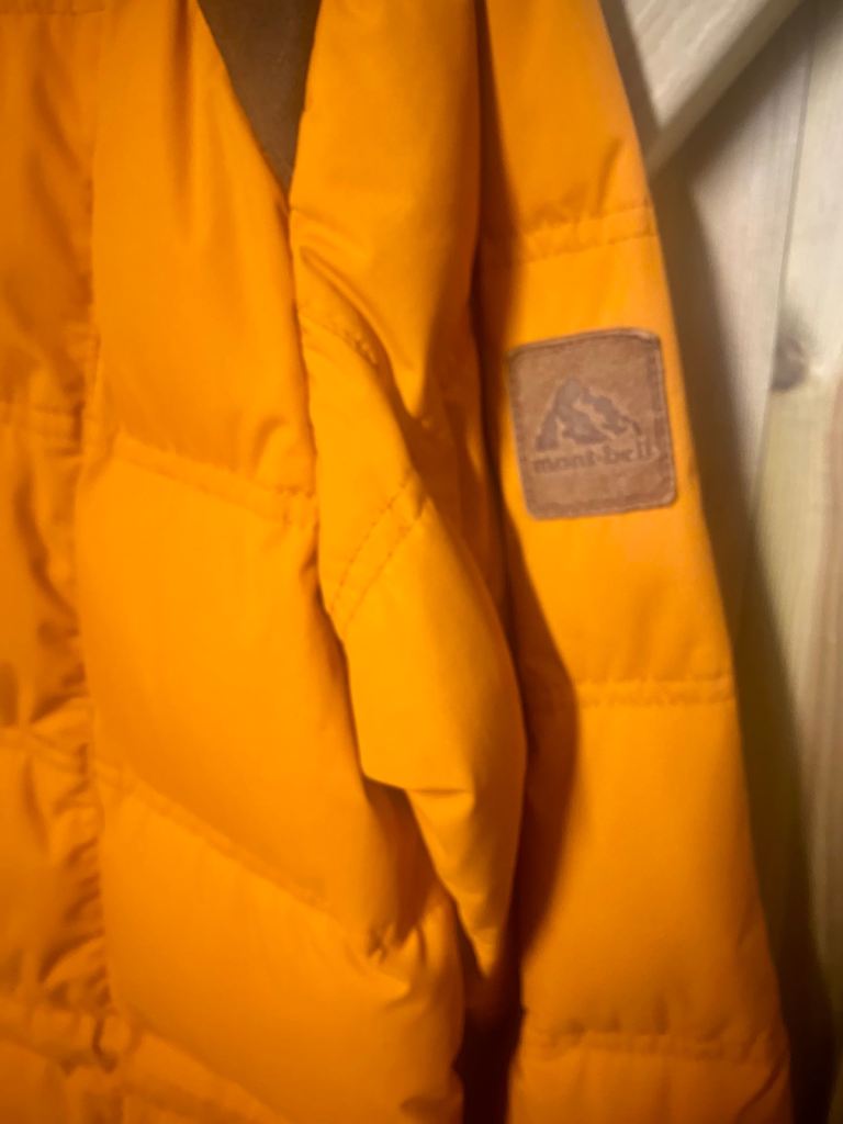 Mont-bell down jacket with brown suede shoulder Size Women’s Small Orange