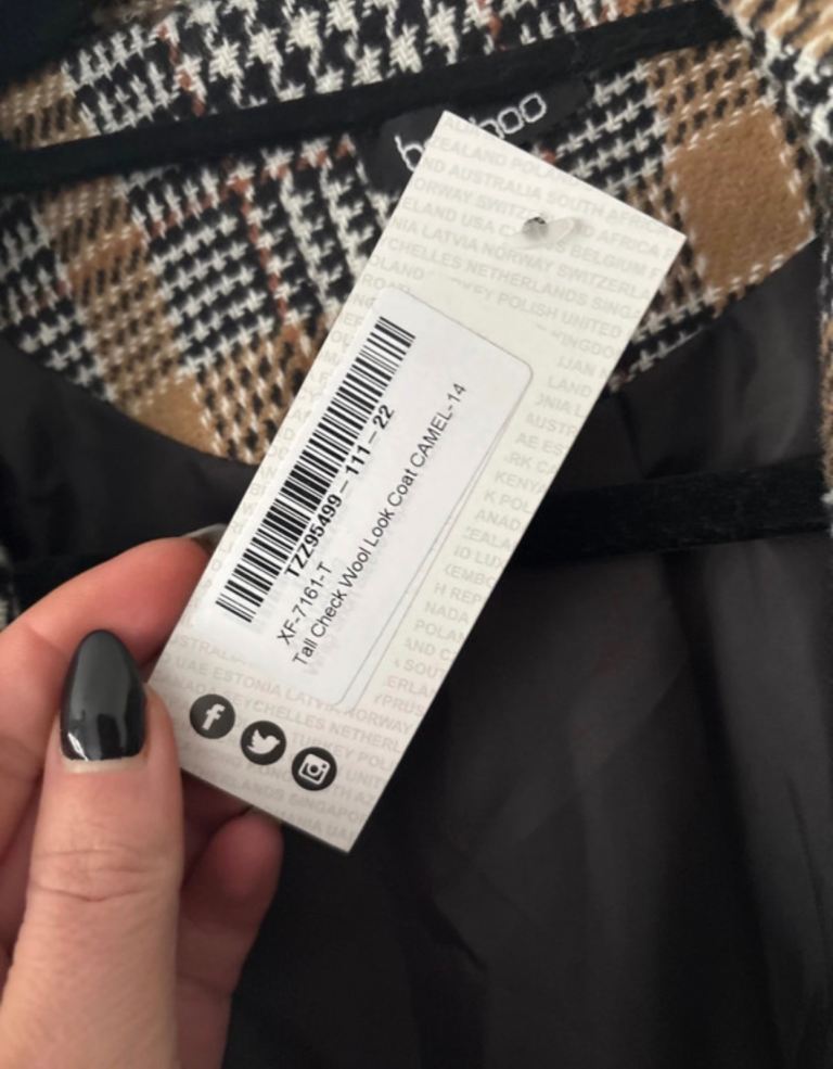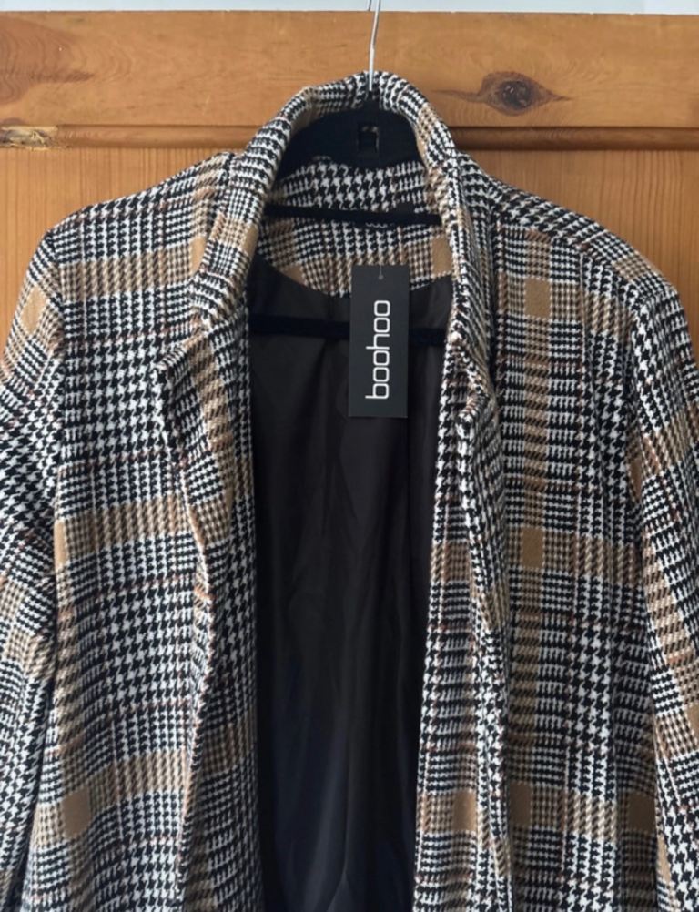 oversized check wool-look coat, featuring a classic double-breasted design with a striking check pattern