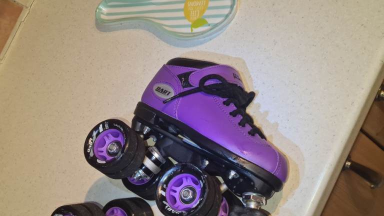 Riedell Dart high end low ankle Rollerskates in excellent condition size 2. I have just cleaned and sterilised them meticulously. See photos for condition size materials flaws etc. Cash on collection or post at extra cost which is via Royal Mail 48hr tracked delivery service. I can offer free local delivery within five miles of my postcode which is LS104NF. I am also in Wakefield on Monday, Wednesday and Friday lunchtimes so free delivery possible around Wakefield but Strictly with mutually agreed terms prior to end of sale. Listed on five other sites so it may end abruptly. Any questions please ask and I will answer asap