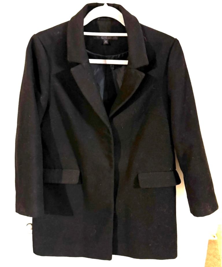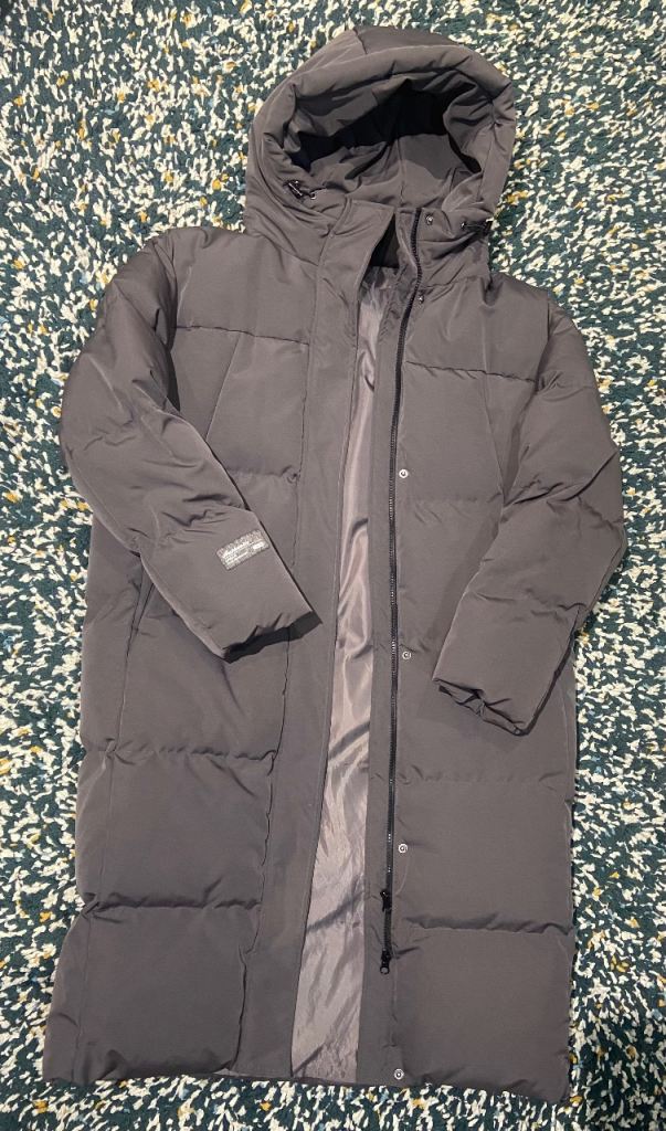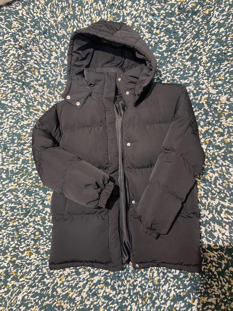 Navy puffer coat.