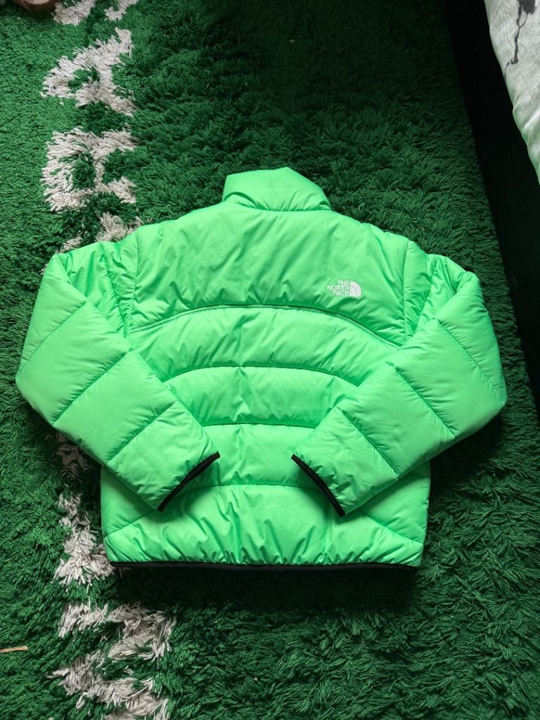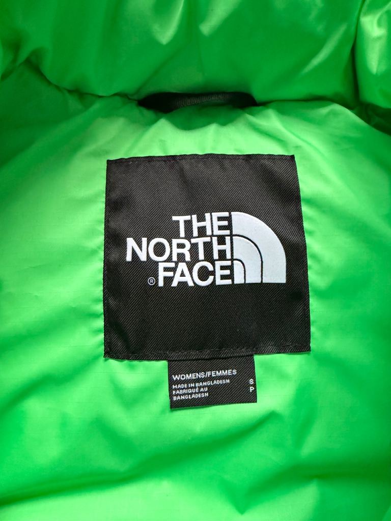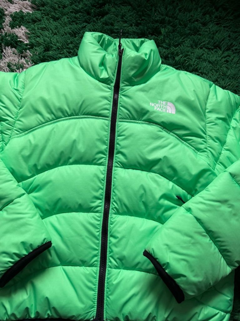 The North Face lime green 1996 retro nuptuse 550 700 puffer jacket coat zip up size women's small