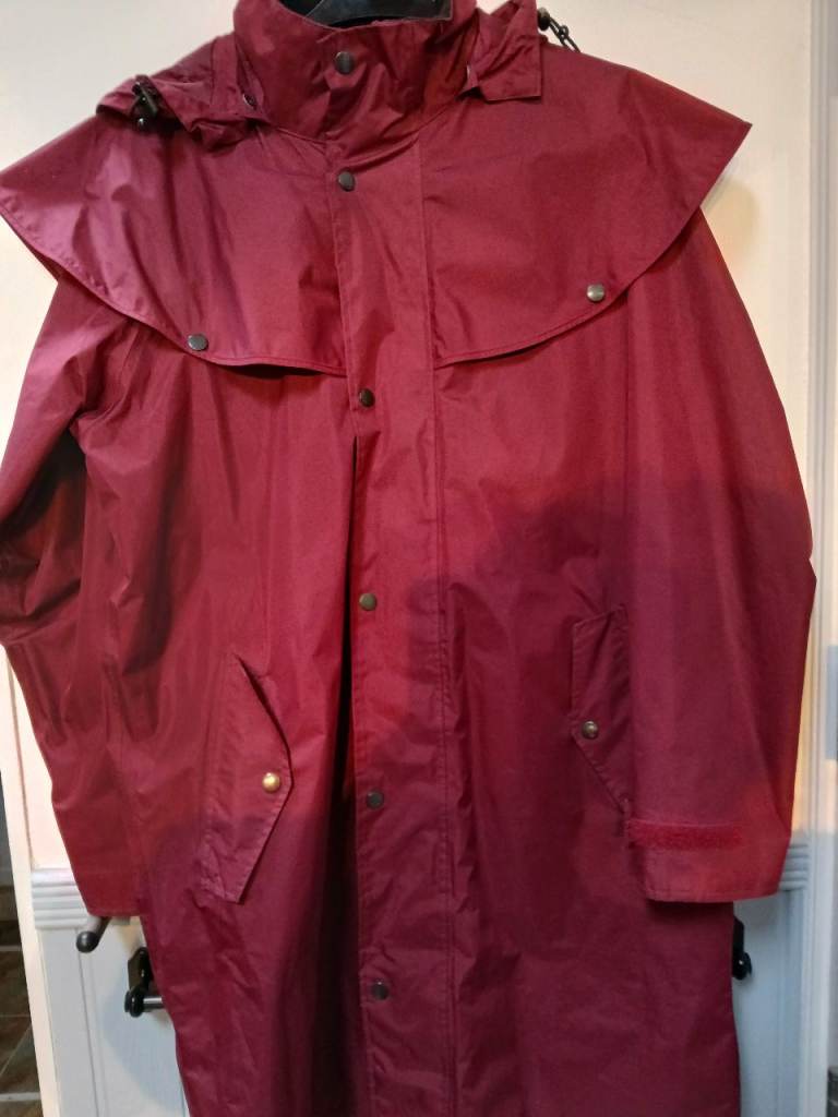 Cotton Traders Windermere Waterproof Coat. Taped seams provide extra protection on rainy days. Cord lining to inner colour. Checked lining to the upper body. Detachable hood with toggle adjustable draw cord. Front zip fastening and protective upper fastening storm flap. Good quality.
