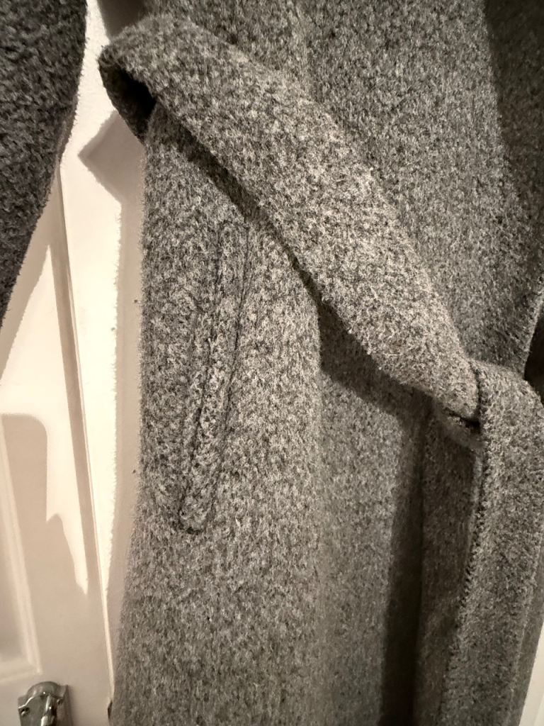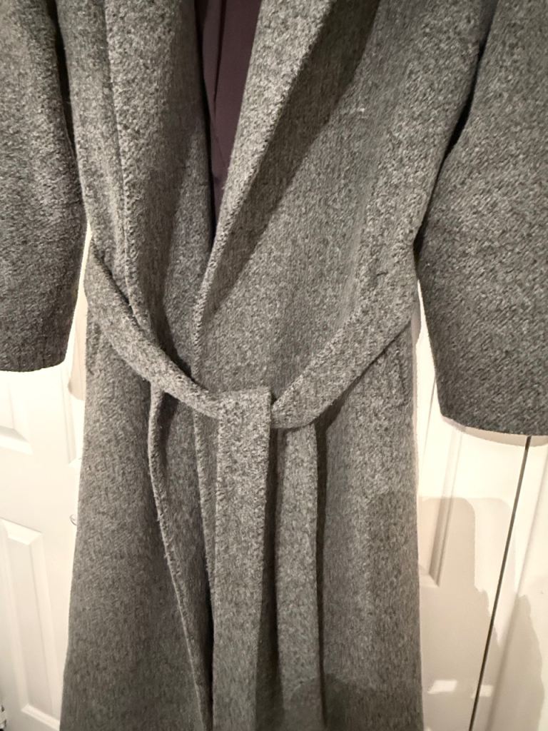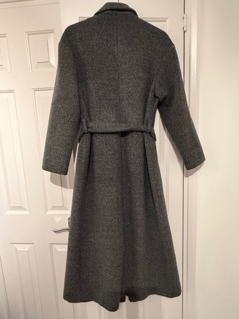 Elegant long women’s coat with belt in very good condition. Size UK 14.