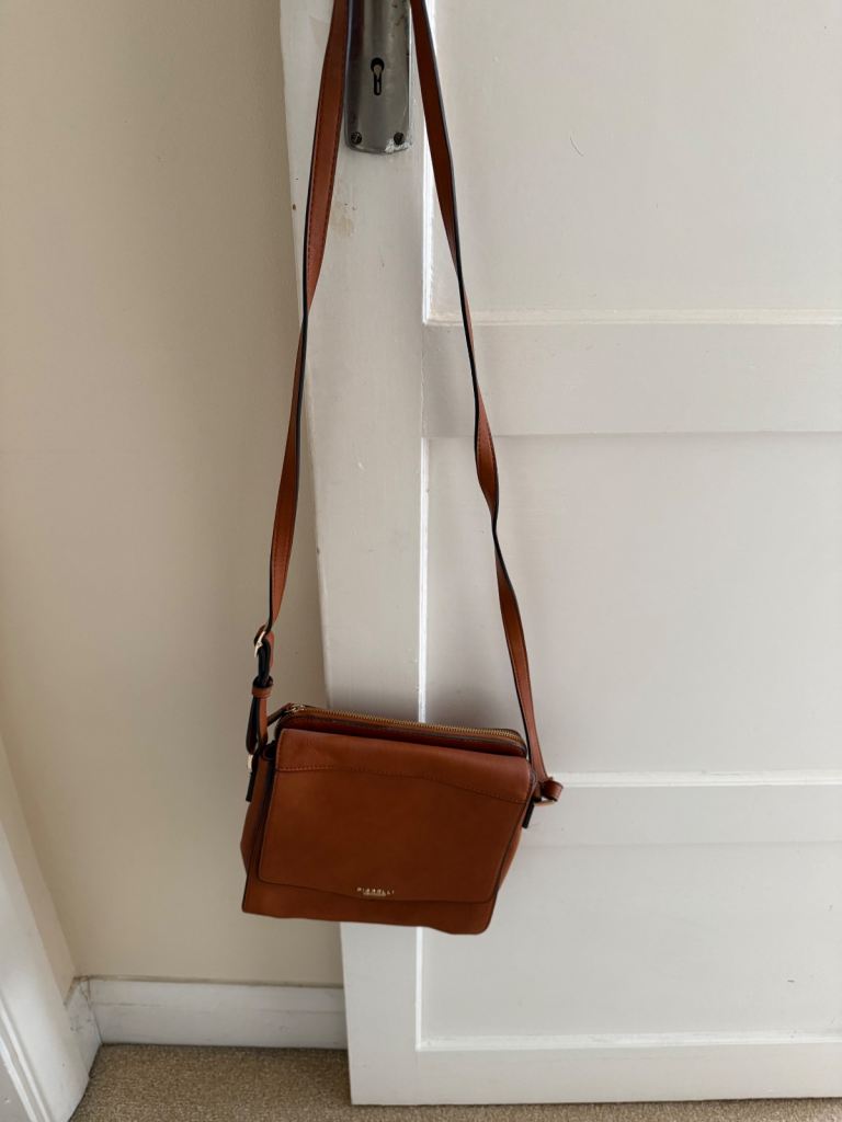 fiorelli cross body bag Brown Shoulder Strap in very good condition. Multi pockets and very spacious. One side of bag is slightly damage which is shown in picture. Otherwise all over bag is very good condition.