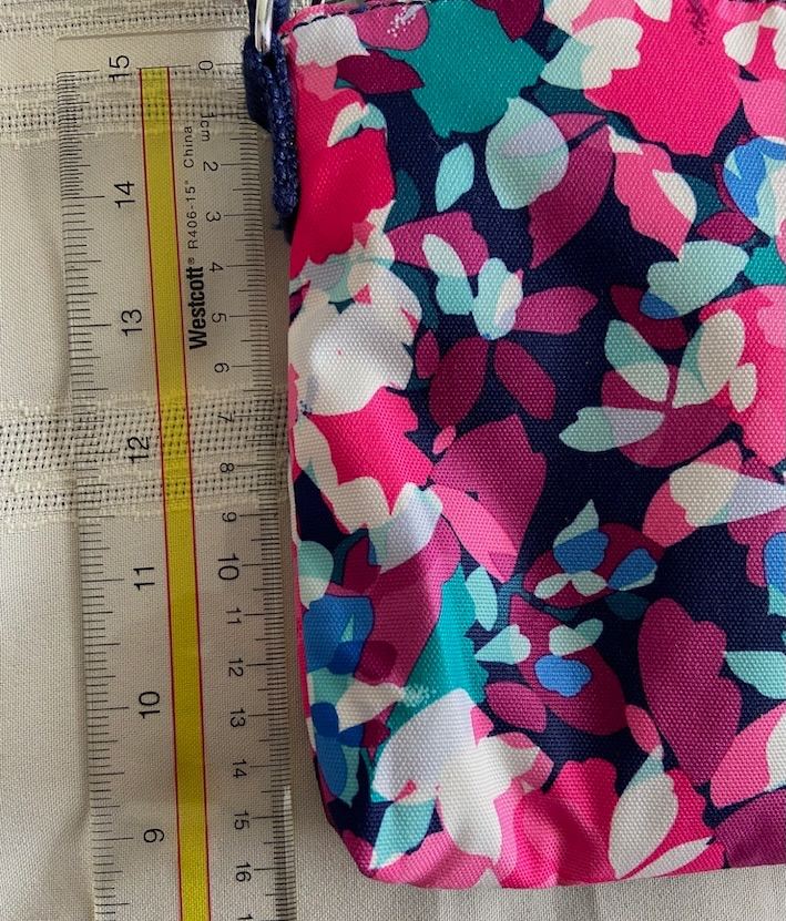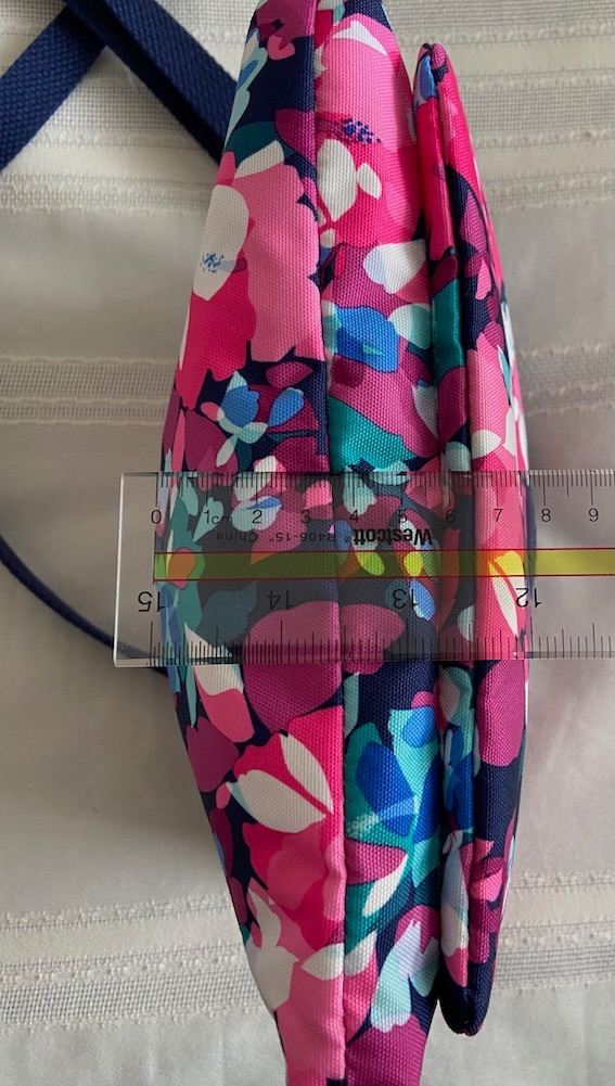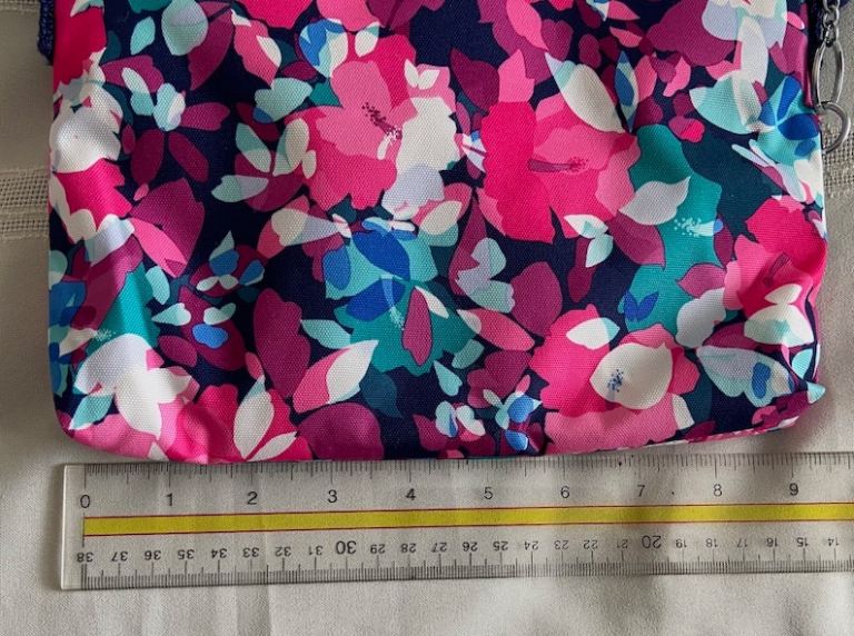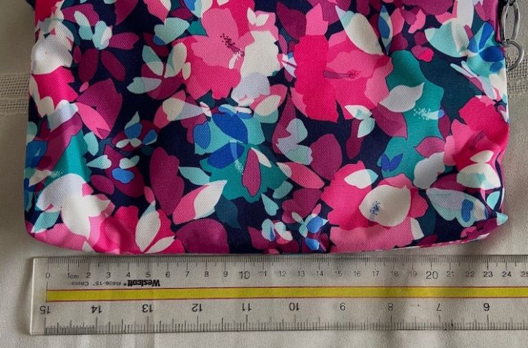 24cm (9.5inch) wide x 16.5cm (6.5inch) height x 3cm (1inch) deep (when empty/flat but can stretch to 8cm/3 inch when filled).