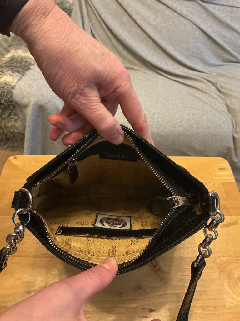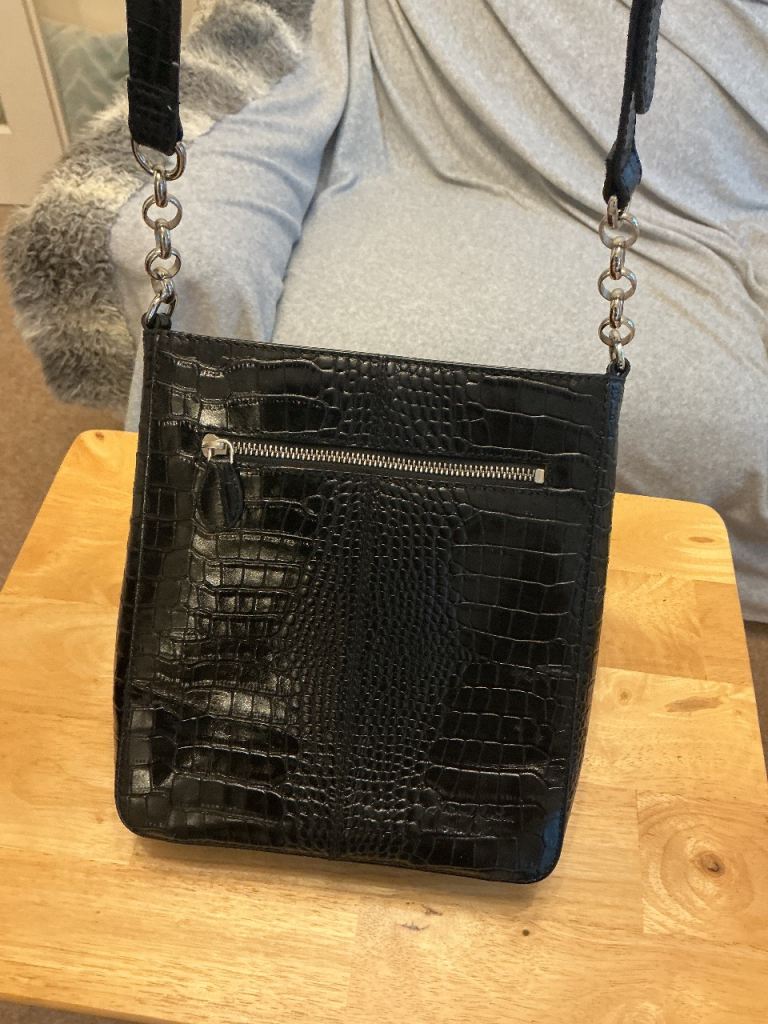 Osprey black crossbody handbag. Believed to be leather. No damage to bag, zips or lining. Selling for relative. Cash on collection only.