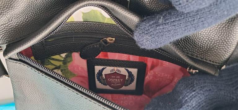 The bag is beautifully made, two main zips to compartments and an internal zipped pocket.
