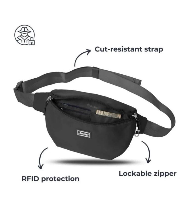 The Foldie Crossbody Bag - Black - Brand New - RFID Protected - Safe Travel