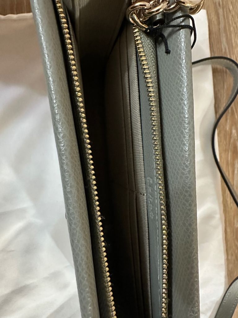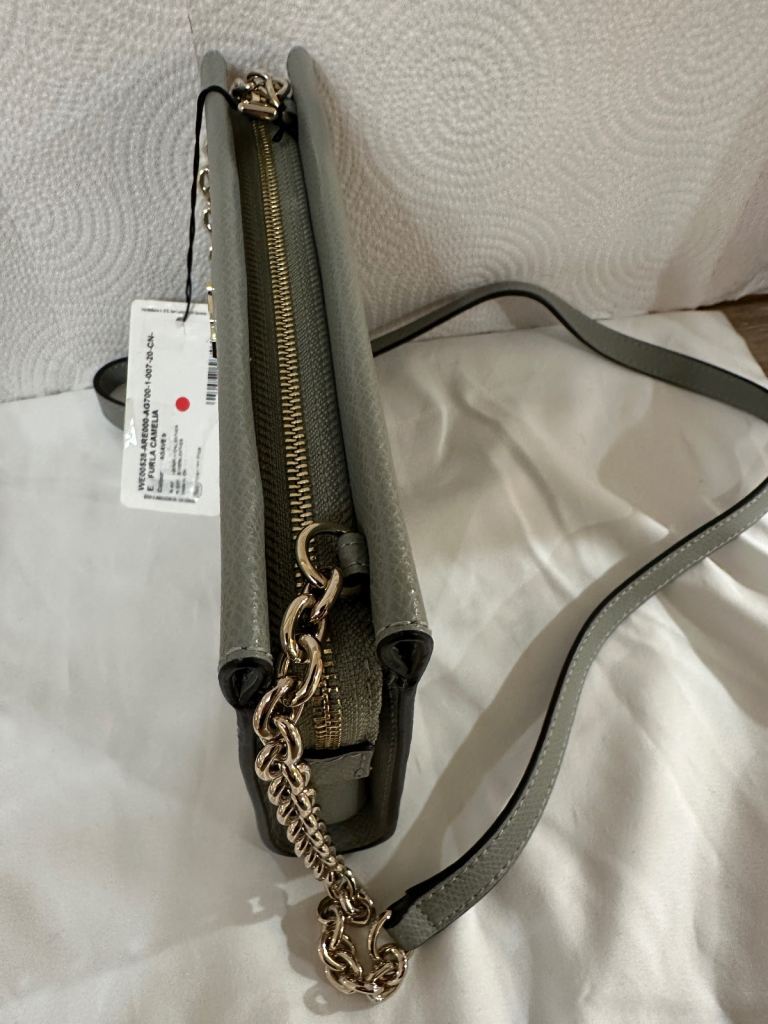 Italian FURLA CAMELIA mini crossbody chain bag, colour AgaveB, x12 credit card slots and zip closure- unwanted gift brand new new never used.