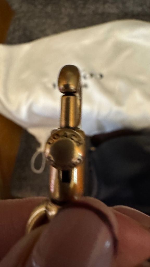 Features include a gold-tone clasp and hardware, all clean and functional.