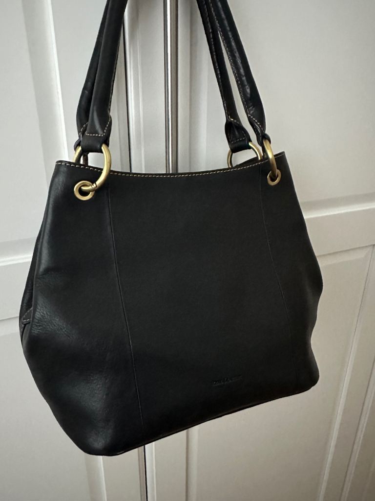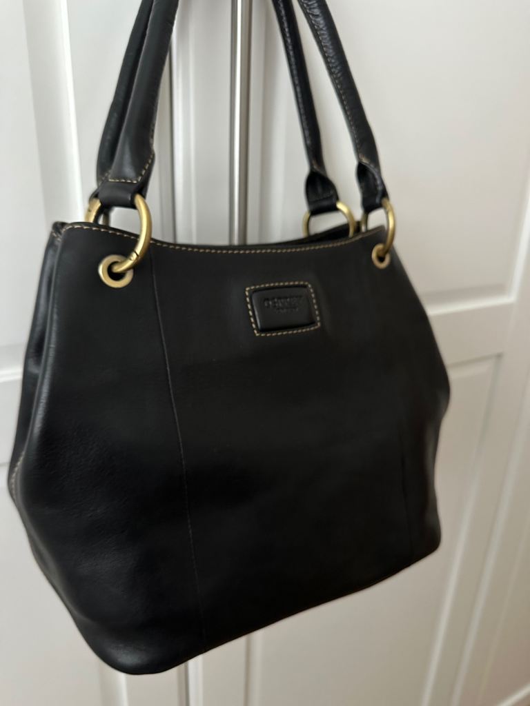 GENUINE OSPREY DESIGNER LADIES GRAB SHOULDER HANDBAG QUALITY BLACK LEATHER GOLD HARDWARE AS NEW