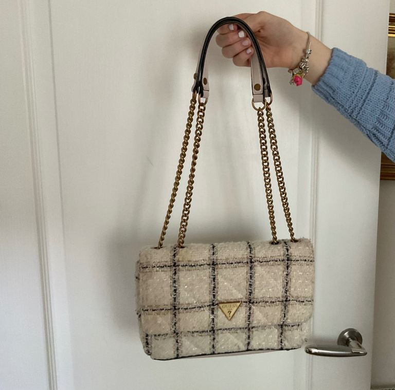 GENUINE GUESS CESSILY TWEED BAG WHITE