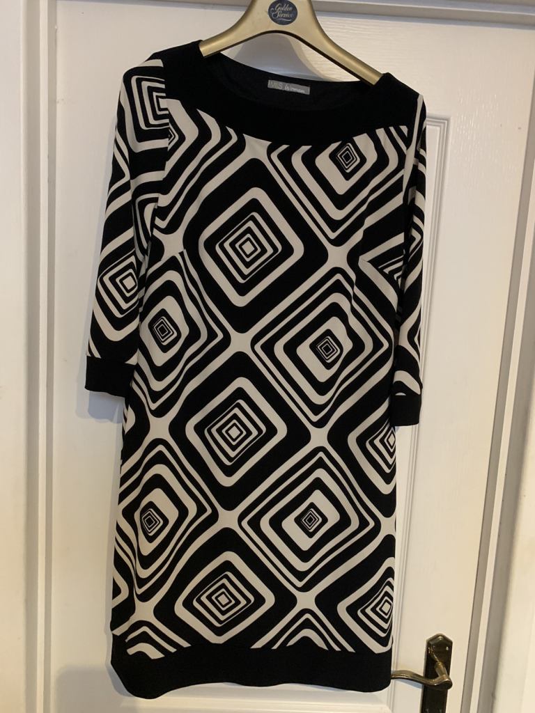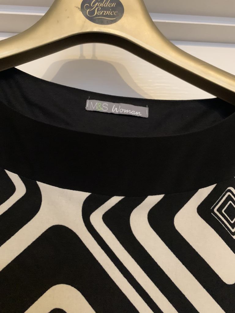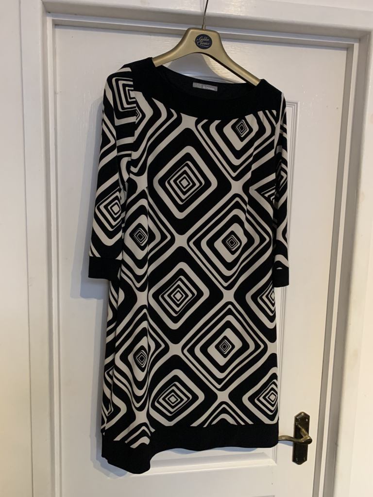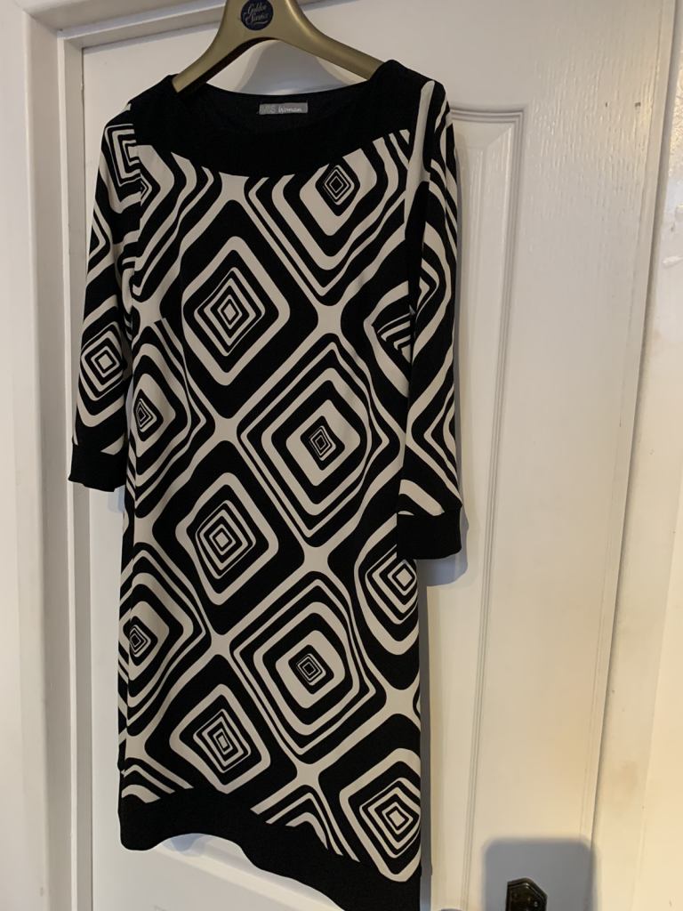 Beautiful M&S dress size 14 in as new condition. Lovely dress black and white. From a smoke and pet free home. No offers. Collection Gorleston, nr316by.