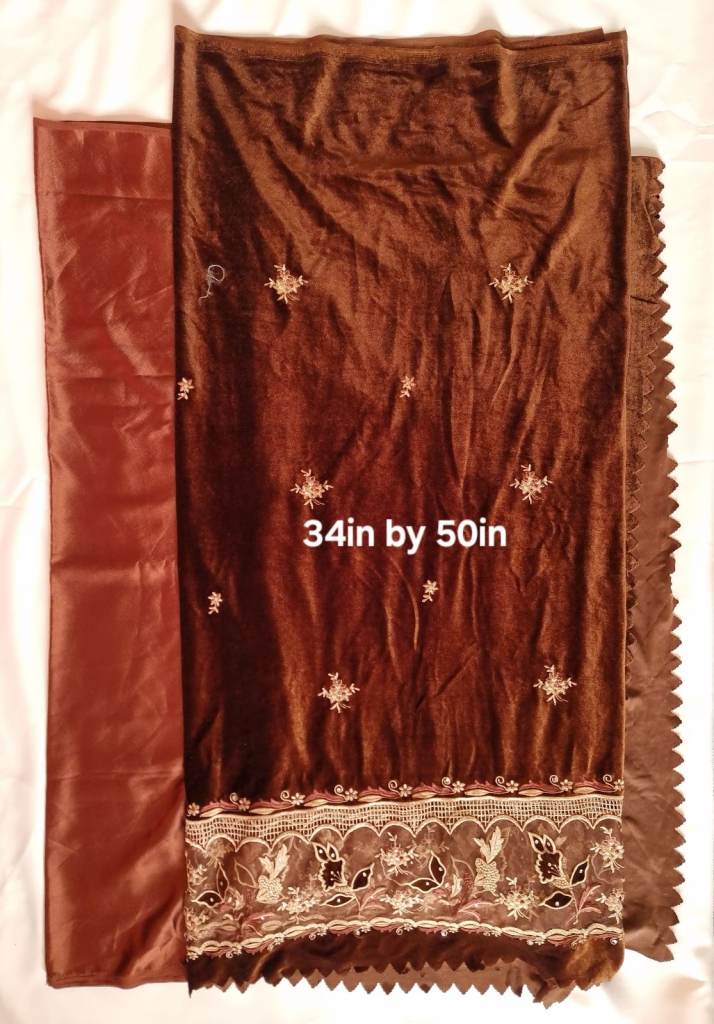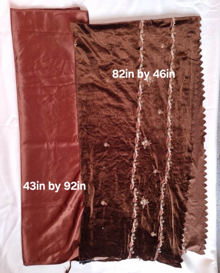 Brown chenille and satin embroidered unstitched 3 piece suit Asian womens dress