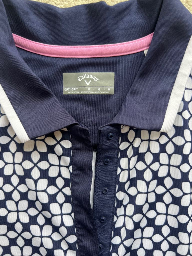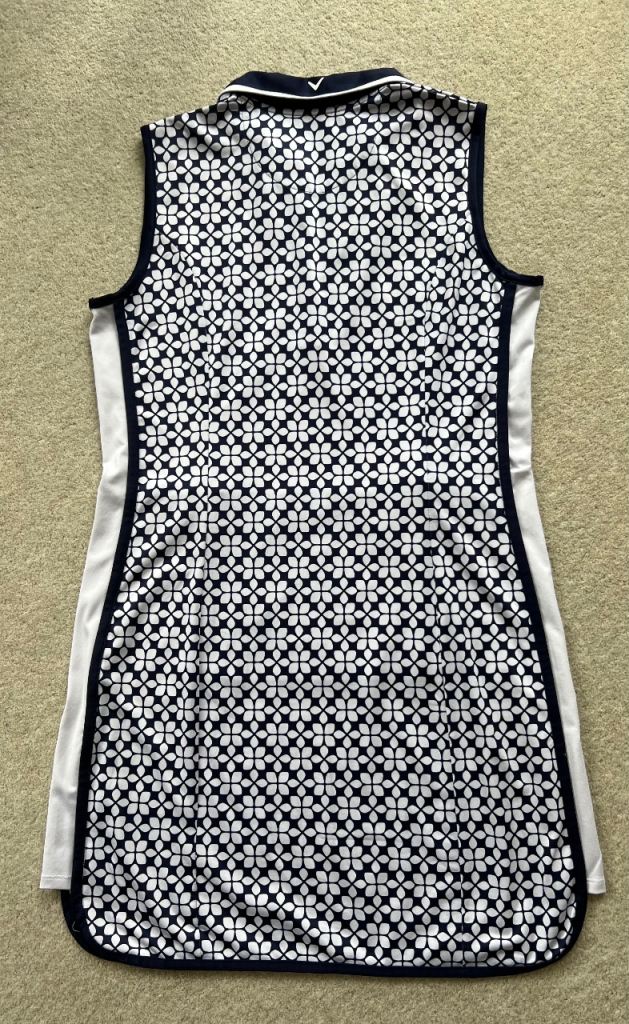 Callaway ladies golf dress, flattering, stretchy with 2 hidden front zip pockets. From smoke & pet free home. Navy & white.