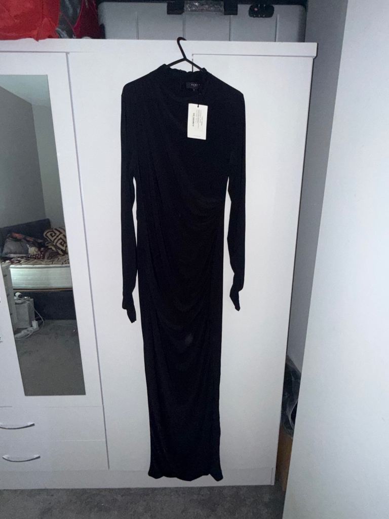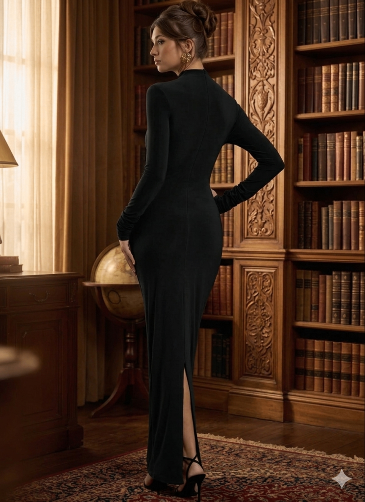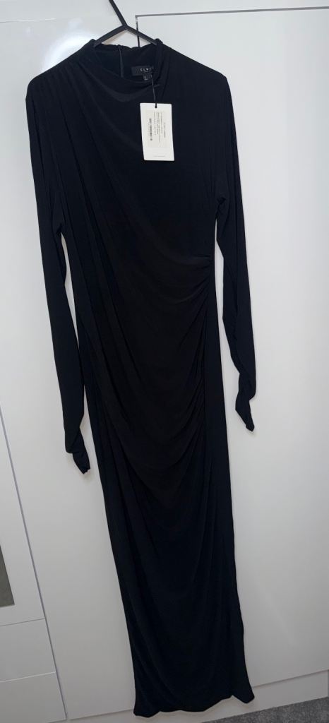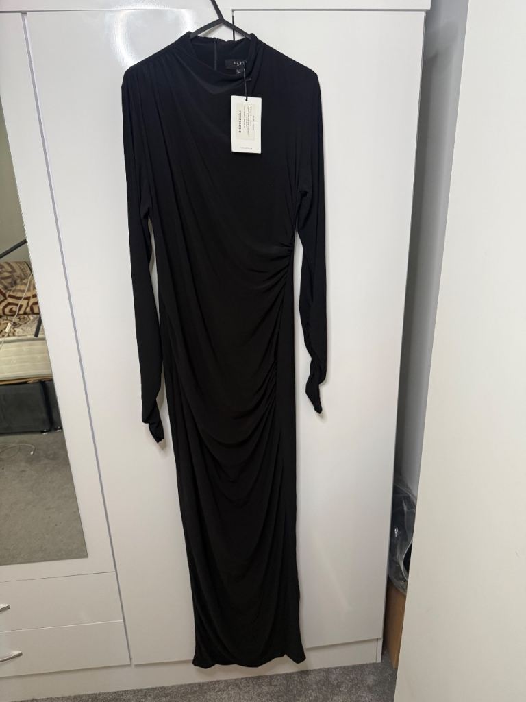 Club L London Hespera Port High-Neck Long-Sleeve Gathered Maxi Dress