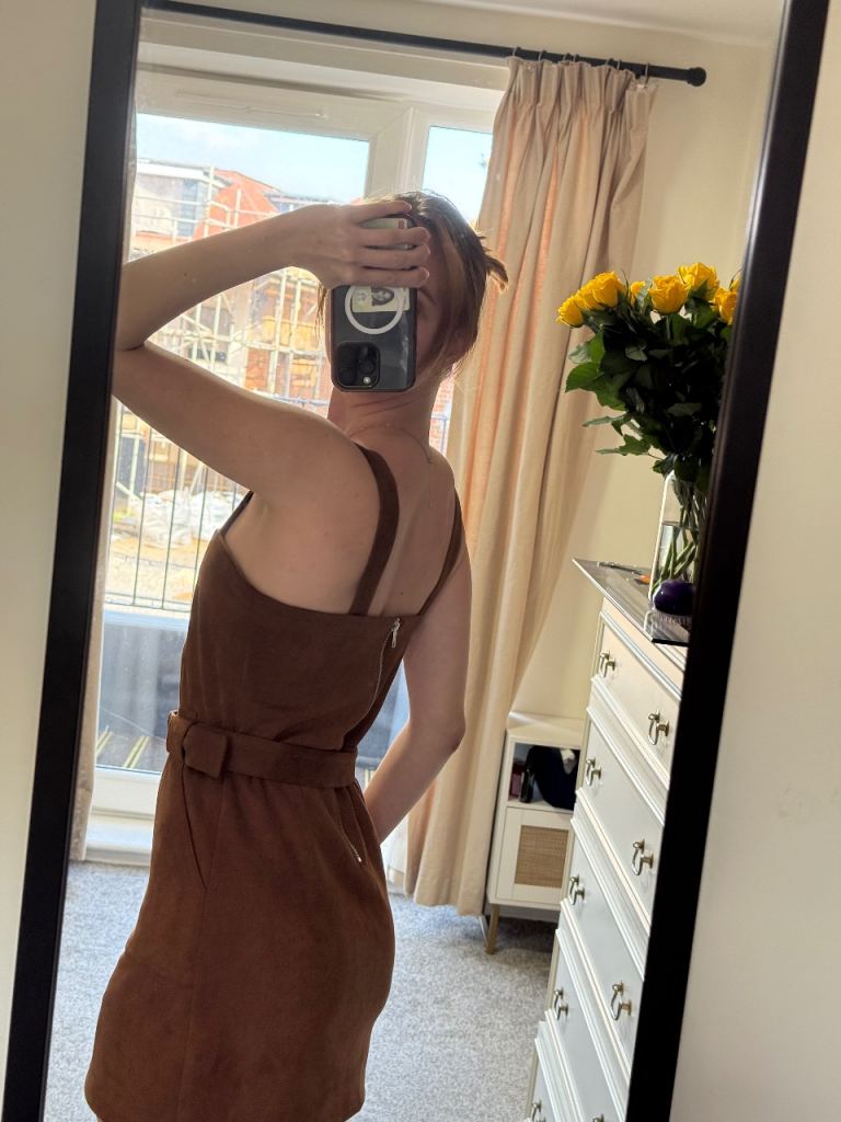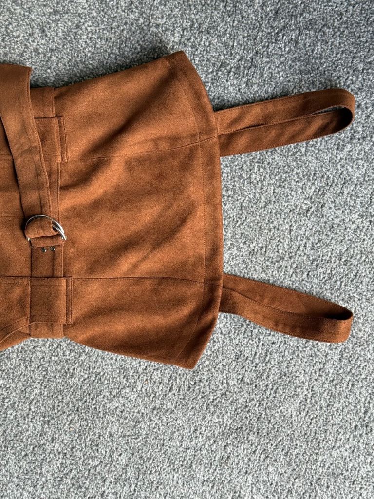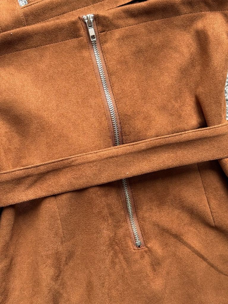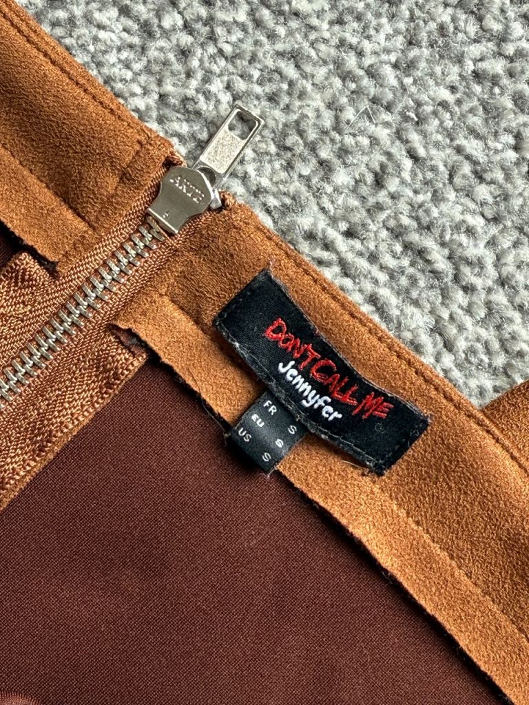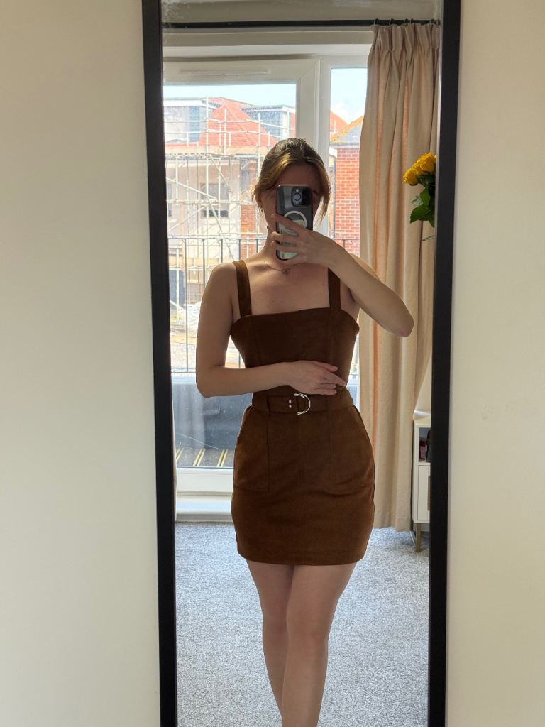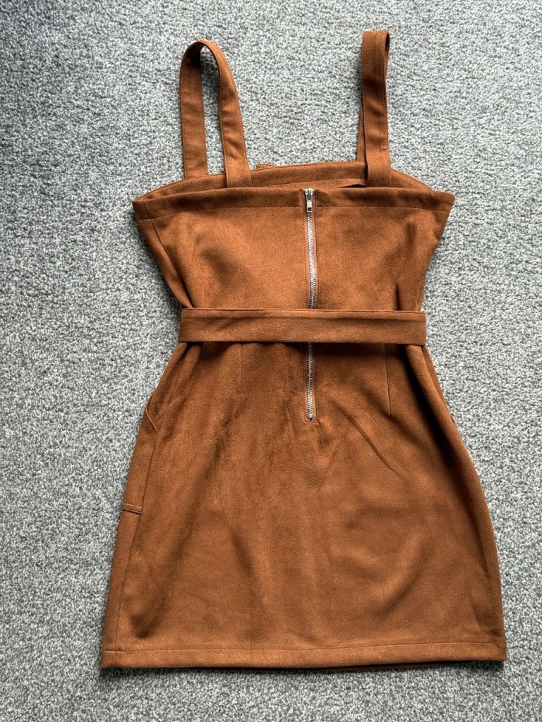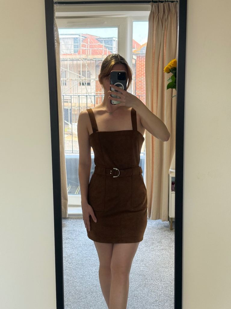 Turn heads effortlessly in this stunning Don’t Call Me Jennifer mini dress in a rich brown suede-effect fabric. Brand new and never worn.