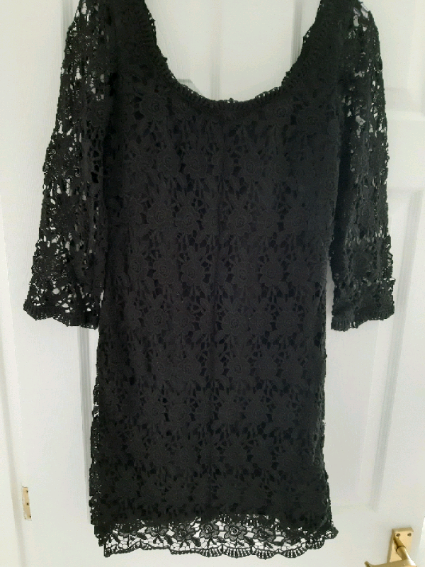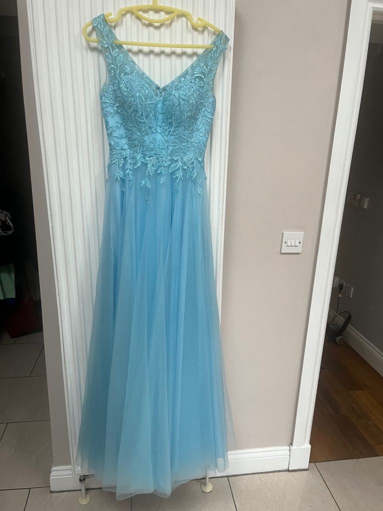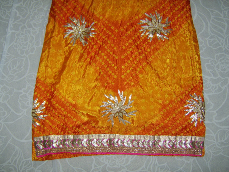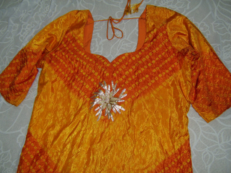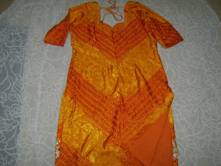 New, silk Dress with gold design and slits on the sides is available for sale.
