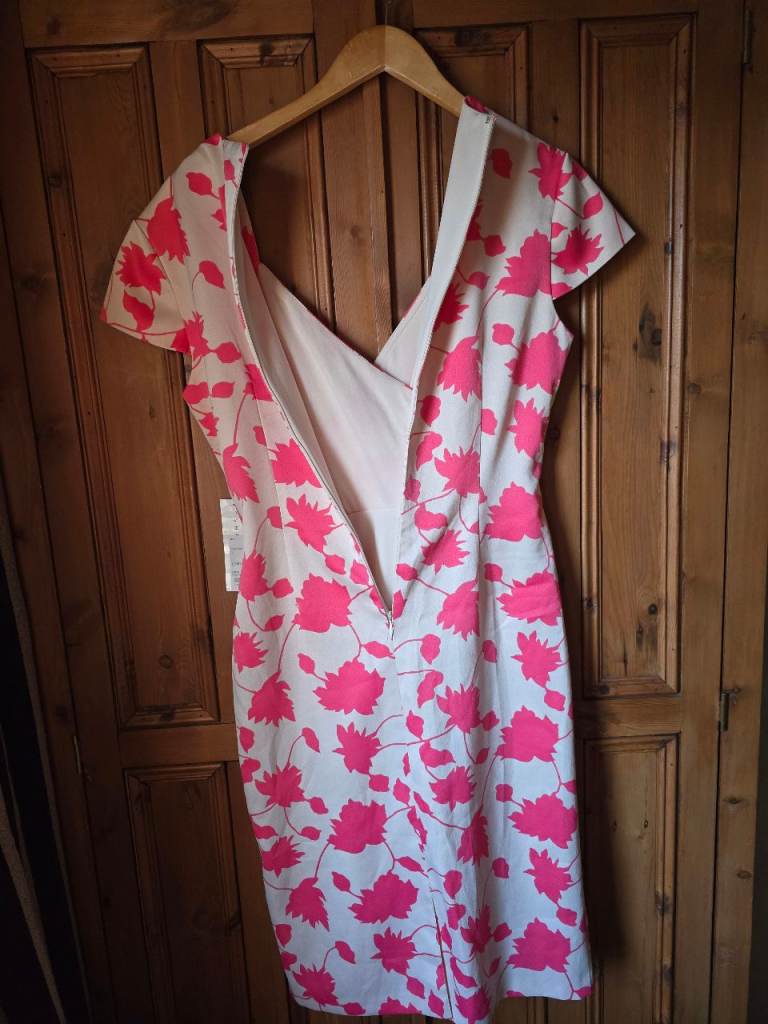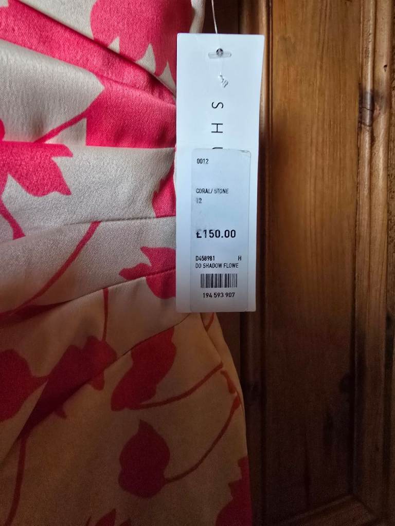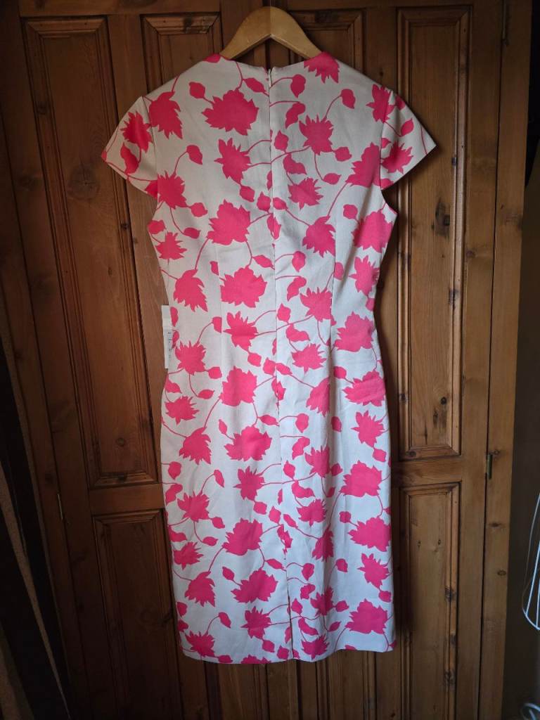 Shubette coral pink and stone colour leaf pattern lined dress. Still has price tag attached, £150. Collection only, thank you😊