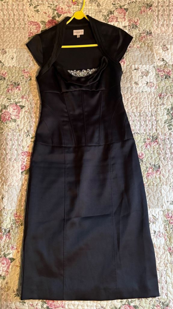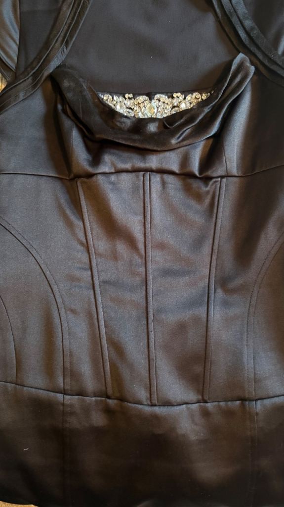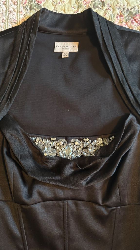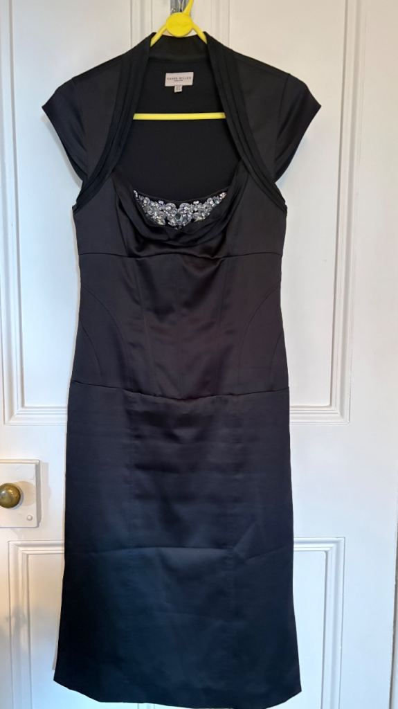 Karen Millen Black Boned Cowl Neck Dress with Jewelled Detail Size 10