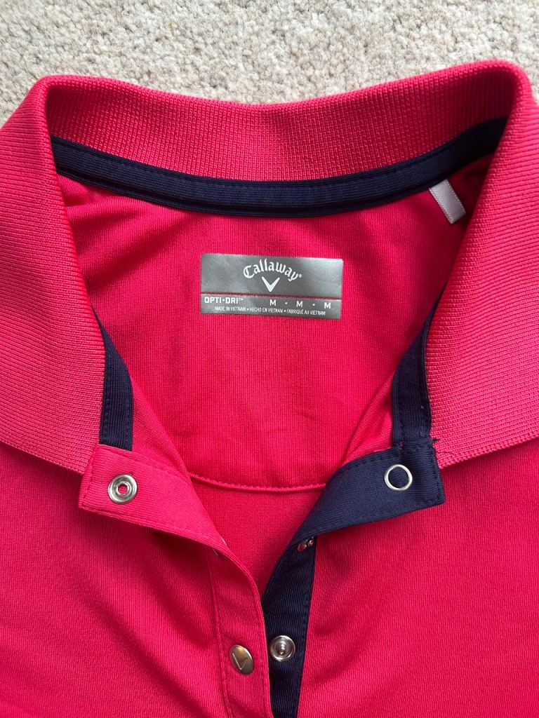 Ladies Callaway Golf dress. Size Medium/12. Stretchy, flattering fit with side zip pockets. Cerise pink with navy trim. From smoke & pet free home.