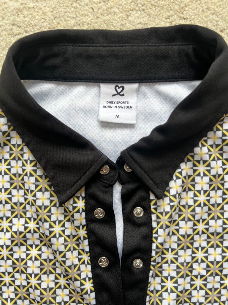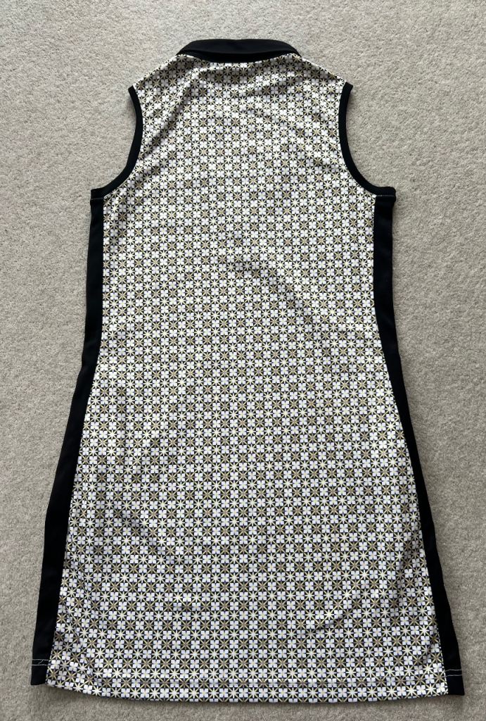 White, gold & black ladies golf dress by Daily sports. Size M/12. Really flattering side panels & concealed zip side pockets. From smoke & pet free home.