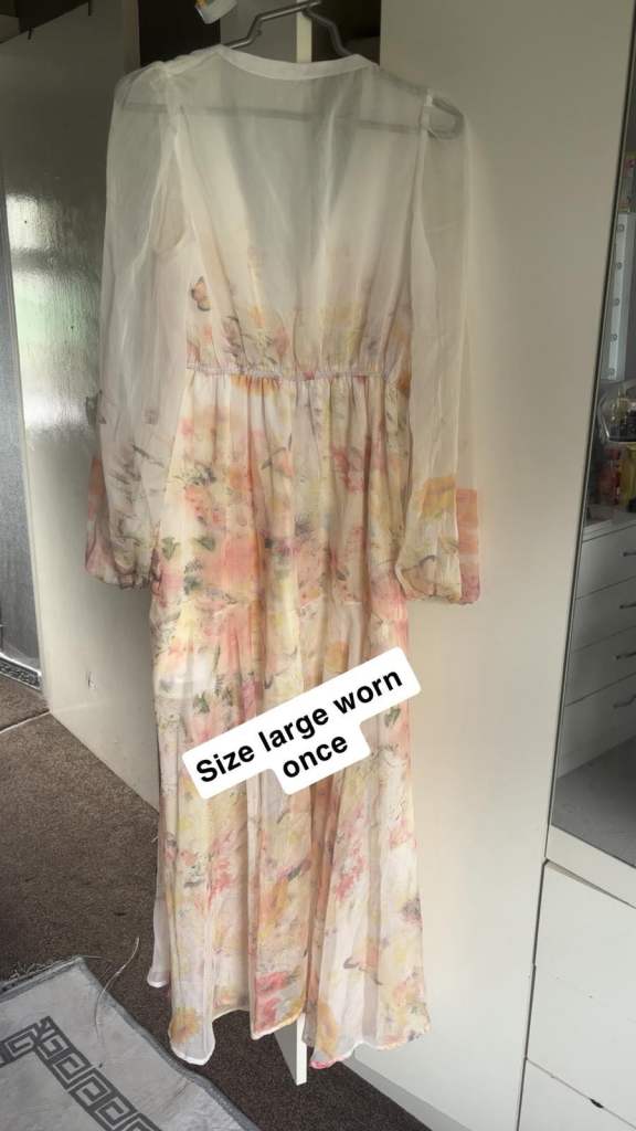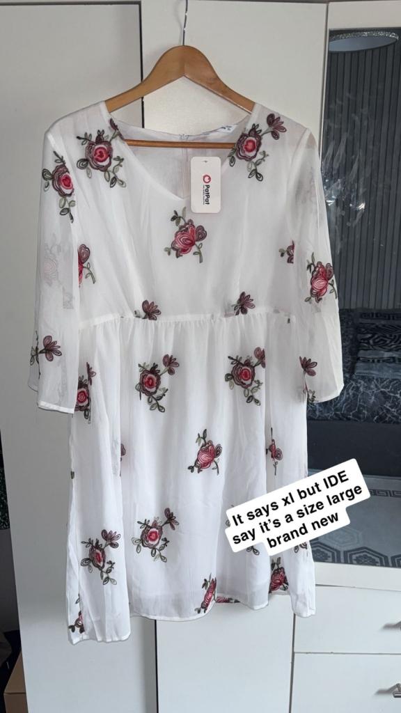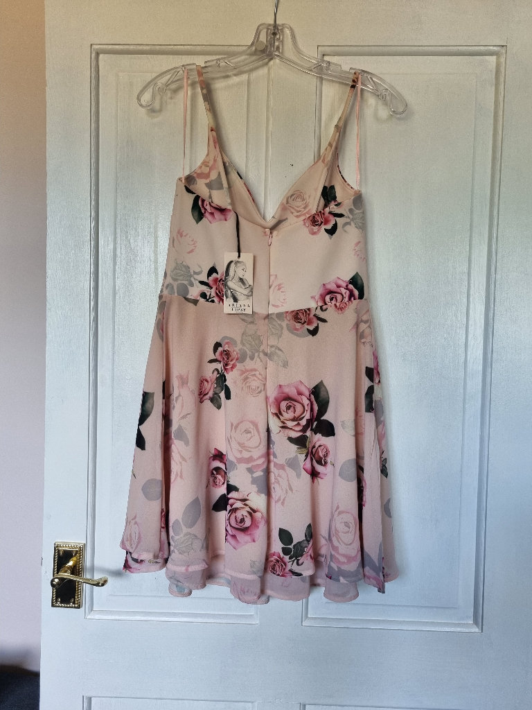 Uk size 10. Ariana grande pink rose print layered skater dress. Still has tags on. Condition New. Pick up only. Ono