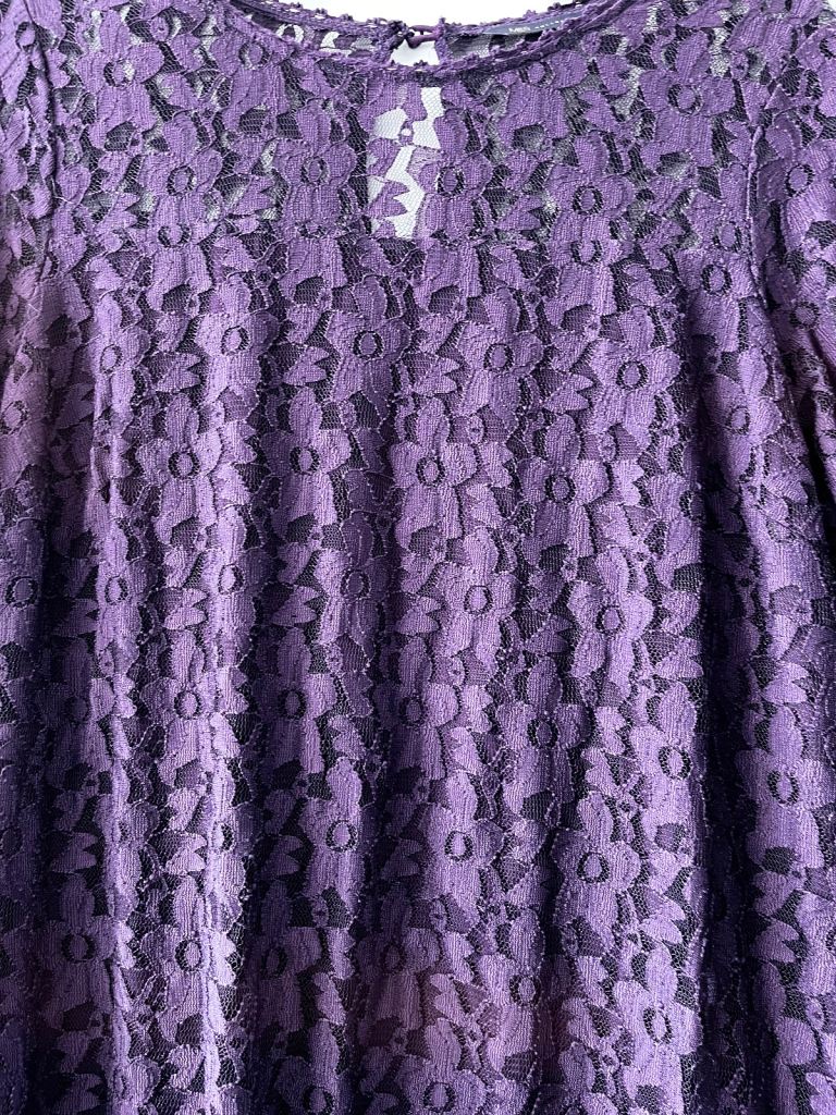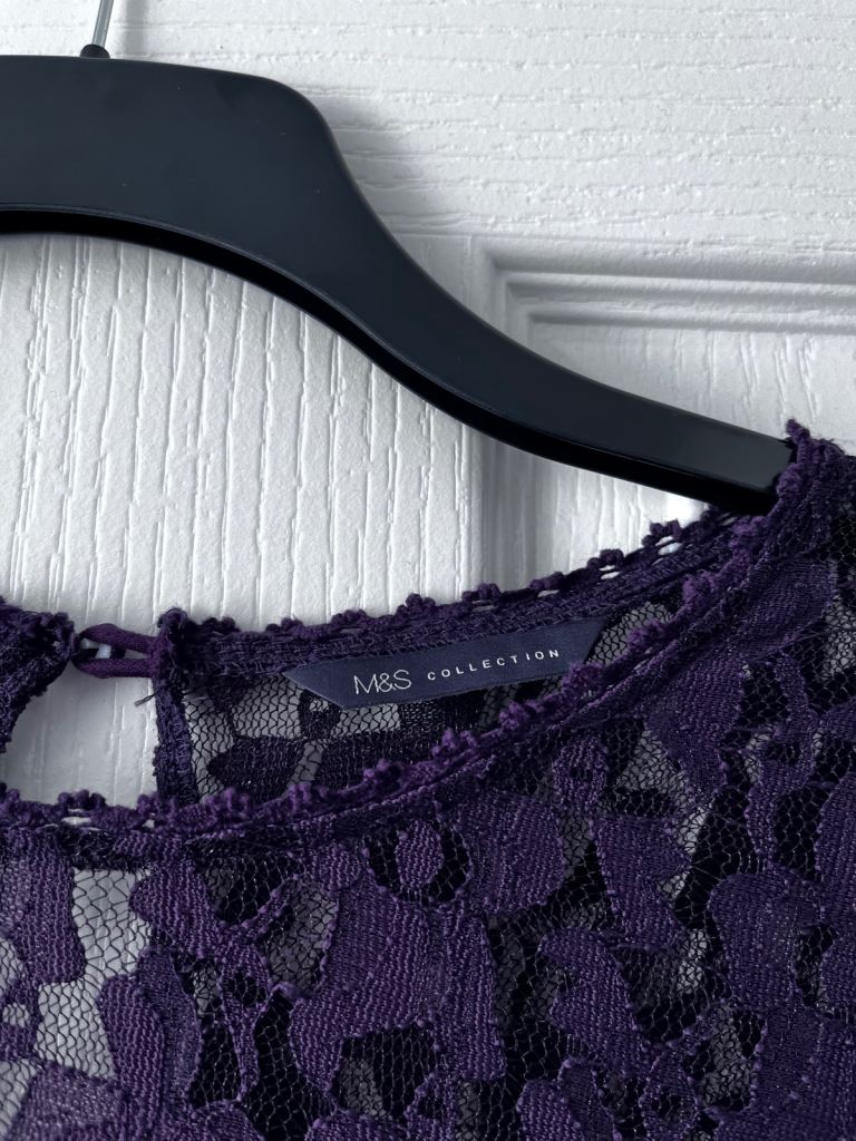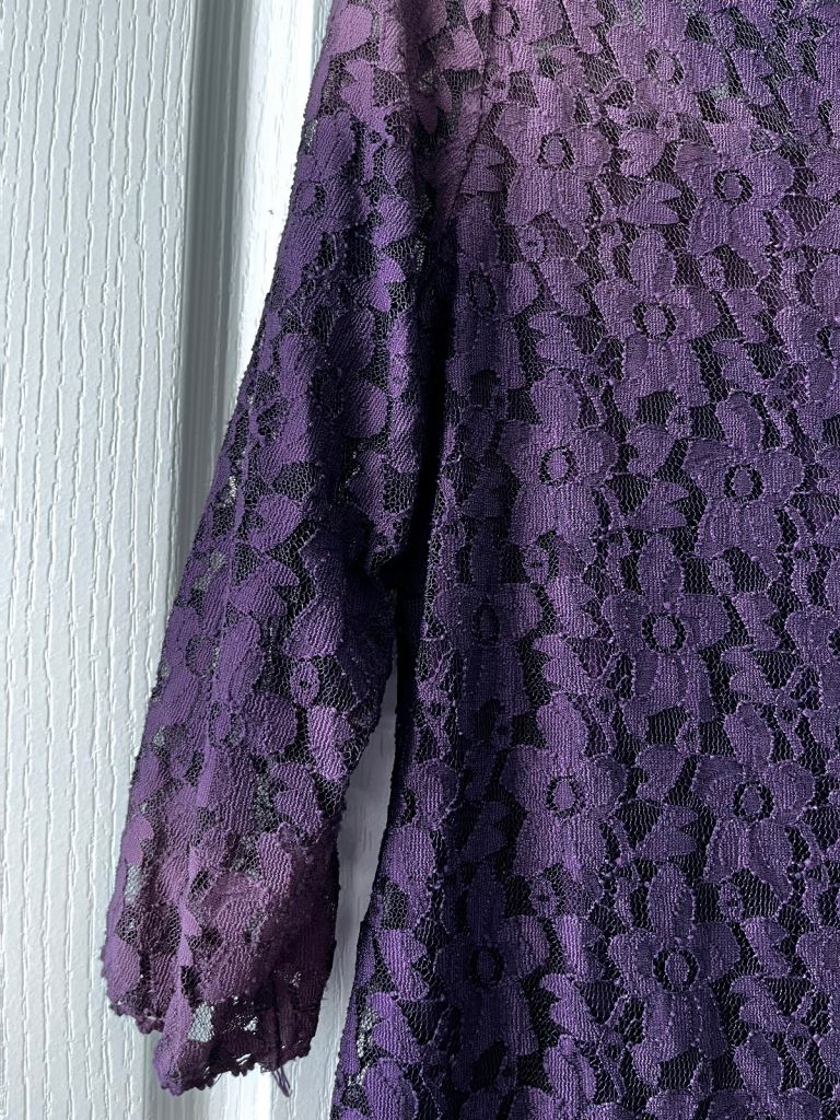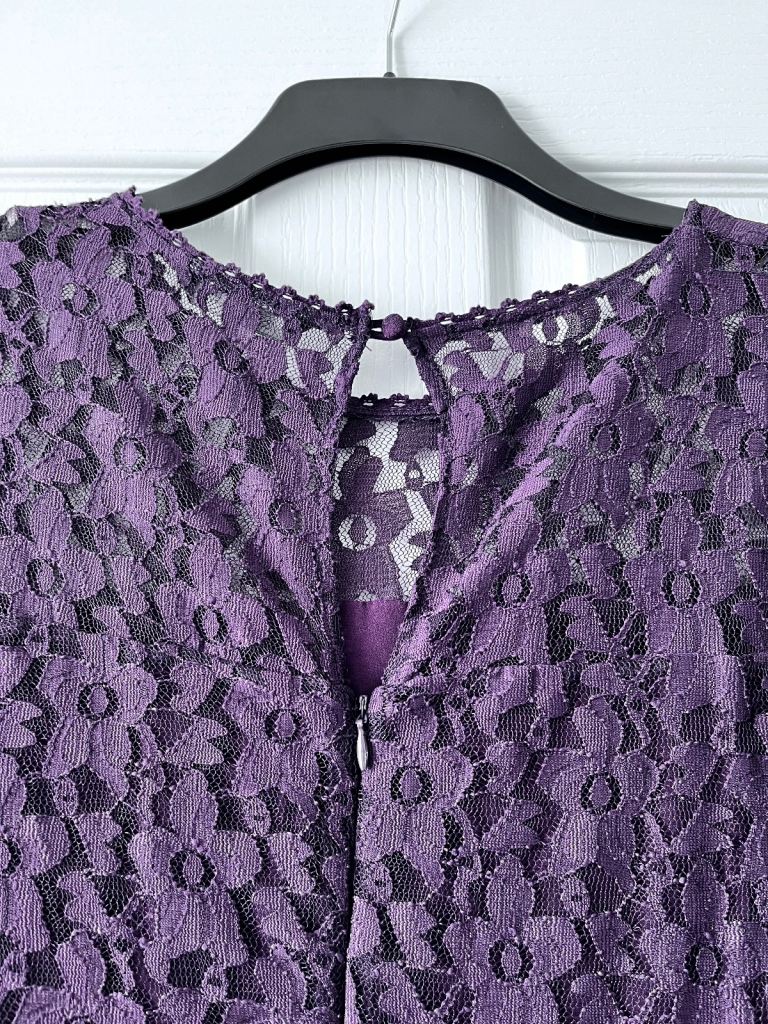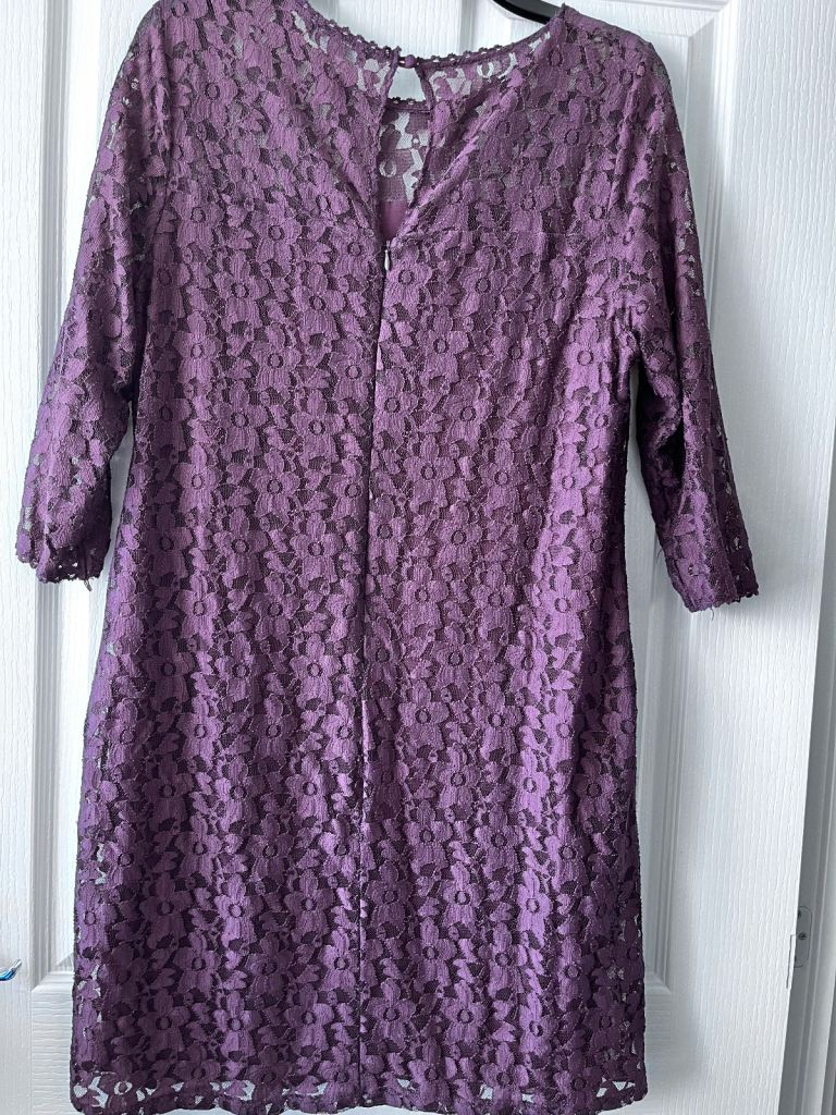 Lovely cocktail style ladies dress, rich purple colour. Size 18. Very good condition. Lace effect overlay