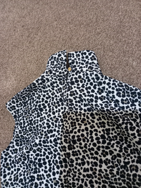 Brand new sleeveless dress black colour. Size:6-8. Back chain design. Mid length.