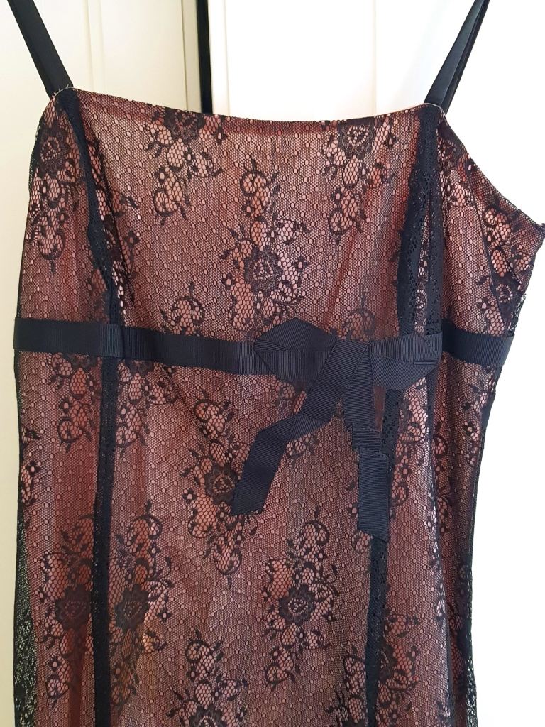 Y2K Vintage Lace Midi Dress by Next – Pink Satin & Black Mesh – Fairycore/Vintage Vibes
