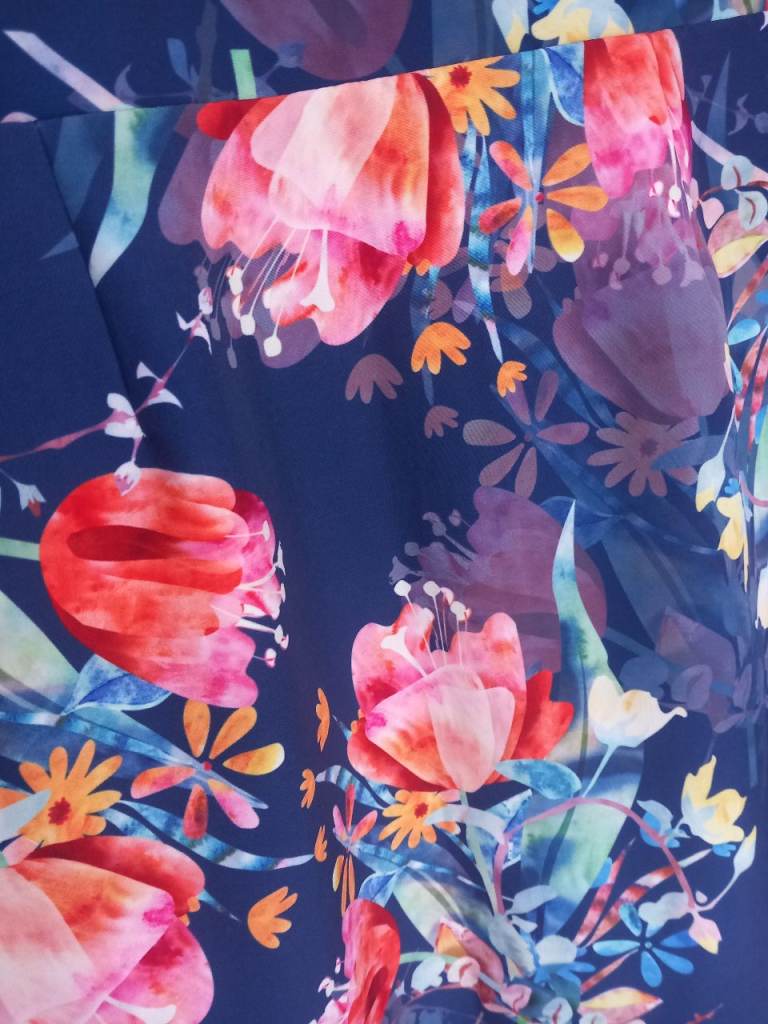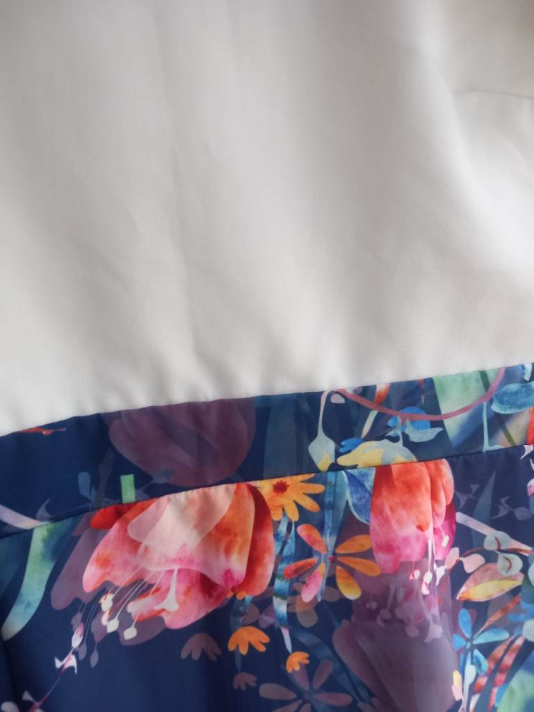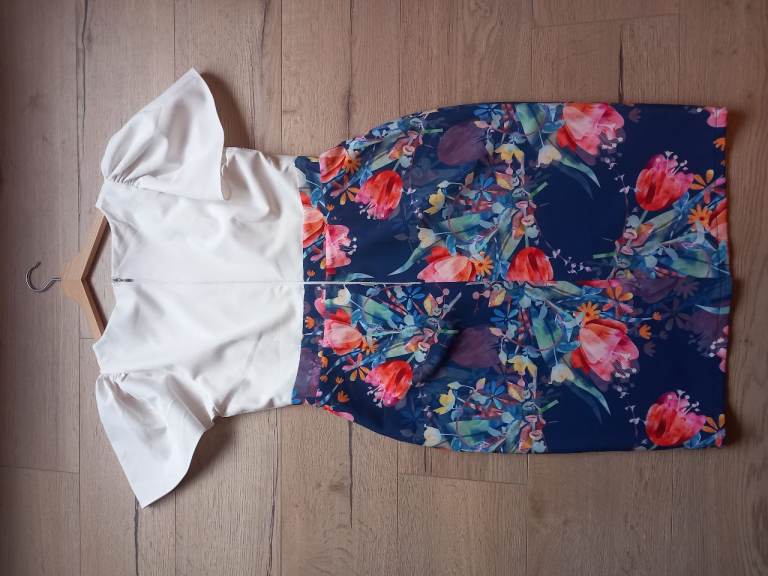 It's a size UK 14 with a light cream top and a beautiful floral patterned skirt.