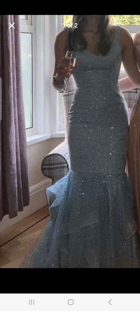Classical light blue sparkly mermaid style prom dress,size small to medium. It has been purchased from an independent prom boutique shop in Swansea.Original price £400.The dress has only been worn once for prom night and is in excellent condition.