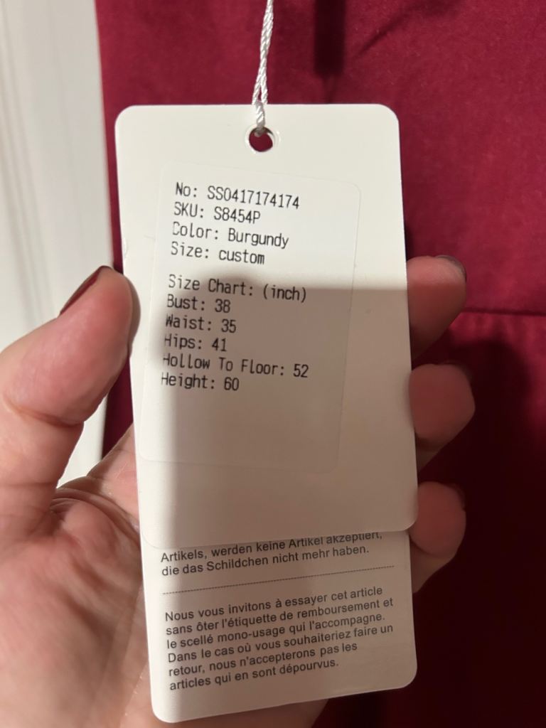 Sizes on tags