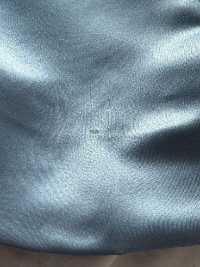 One small mark that is covered by the folds of the skirt.